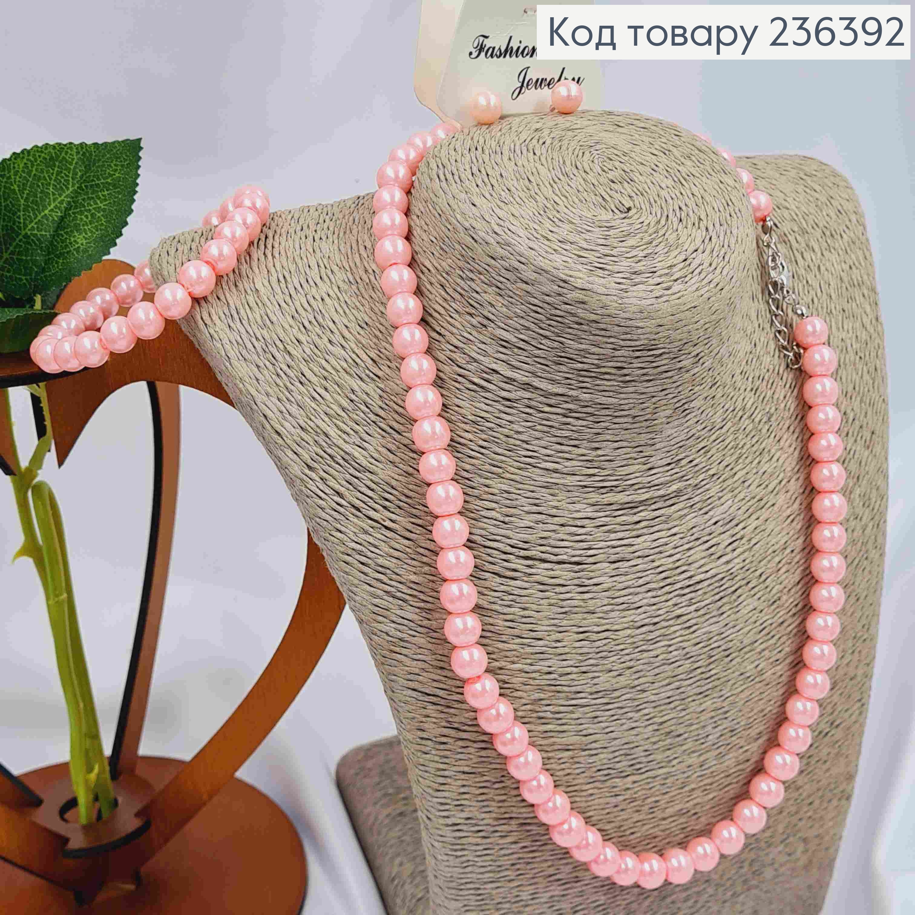 Набор Розового цвета, Бусы из жемчужин 8мм, (48+4см), Браслет 8мм, (18см), Серьги гвоздики 8мм