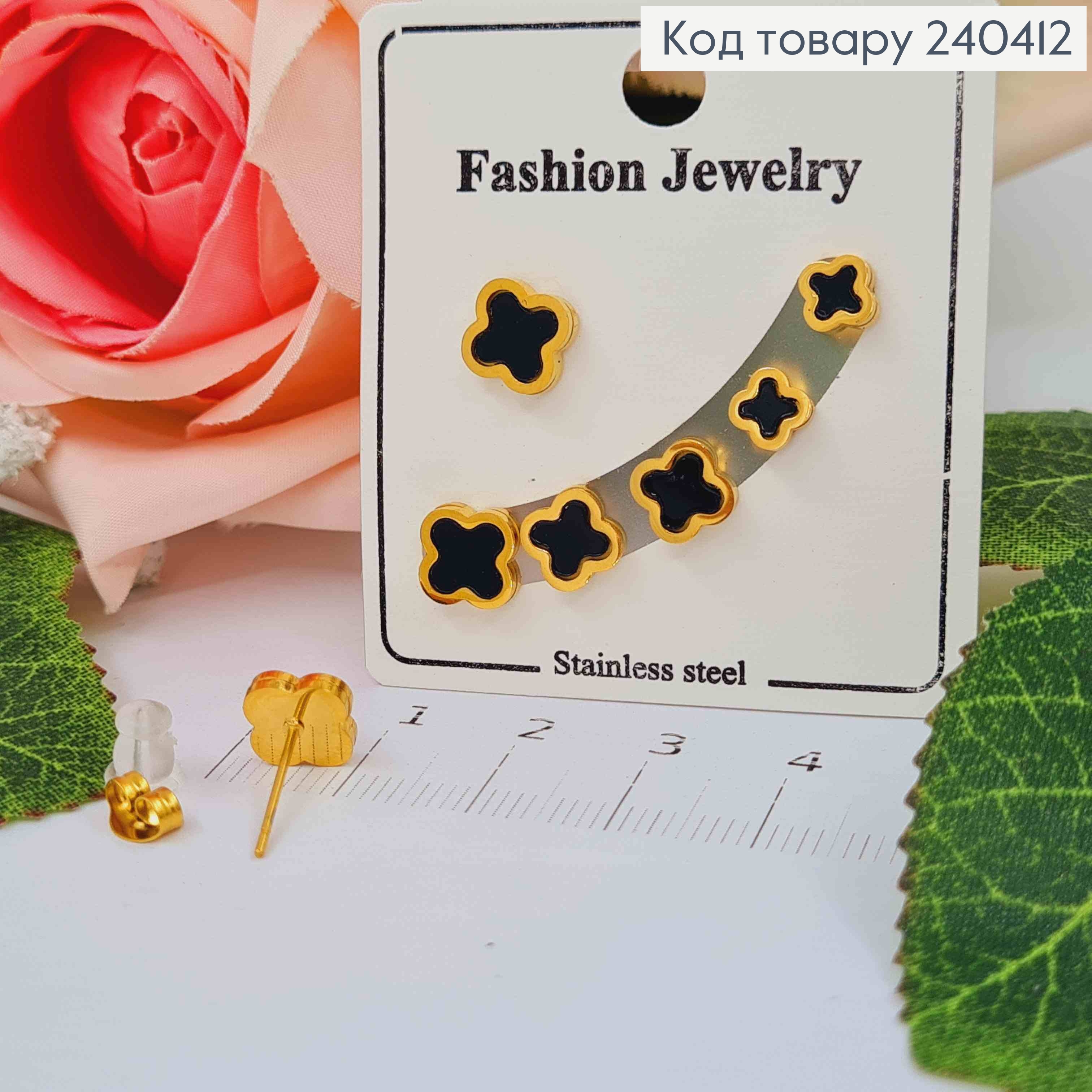 Набор серьг гвоздиков "Van Cleef" с черной эмалью, 3пары/наб., сталь Stainless Steel