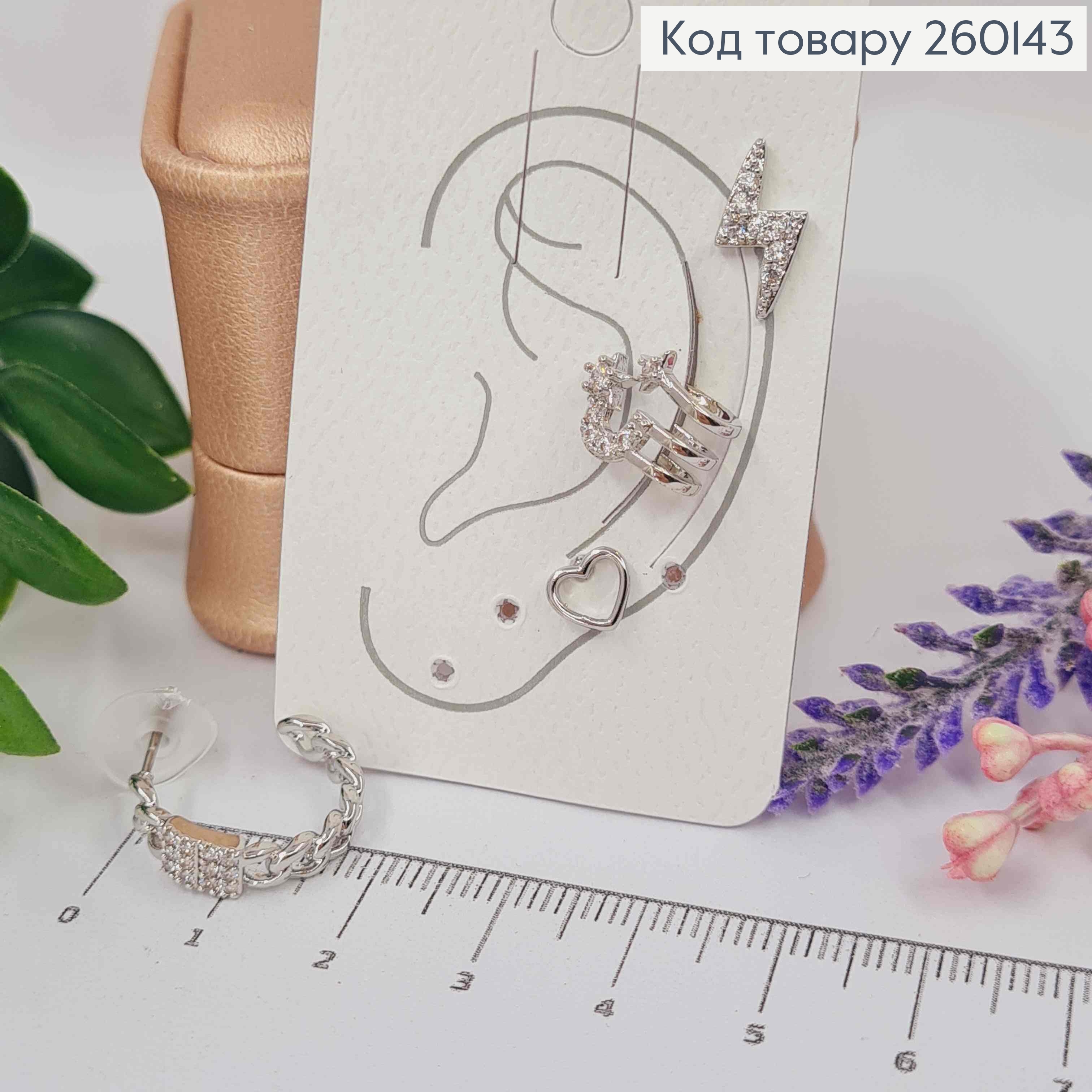 Набор серьг, Кафы(1шт)+Гвозди(3шт), Сердце/Звезды/Цепочка с камешками, Серебряного цвета, Сталь