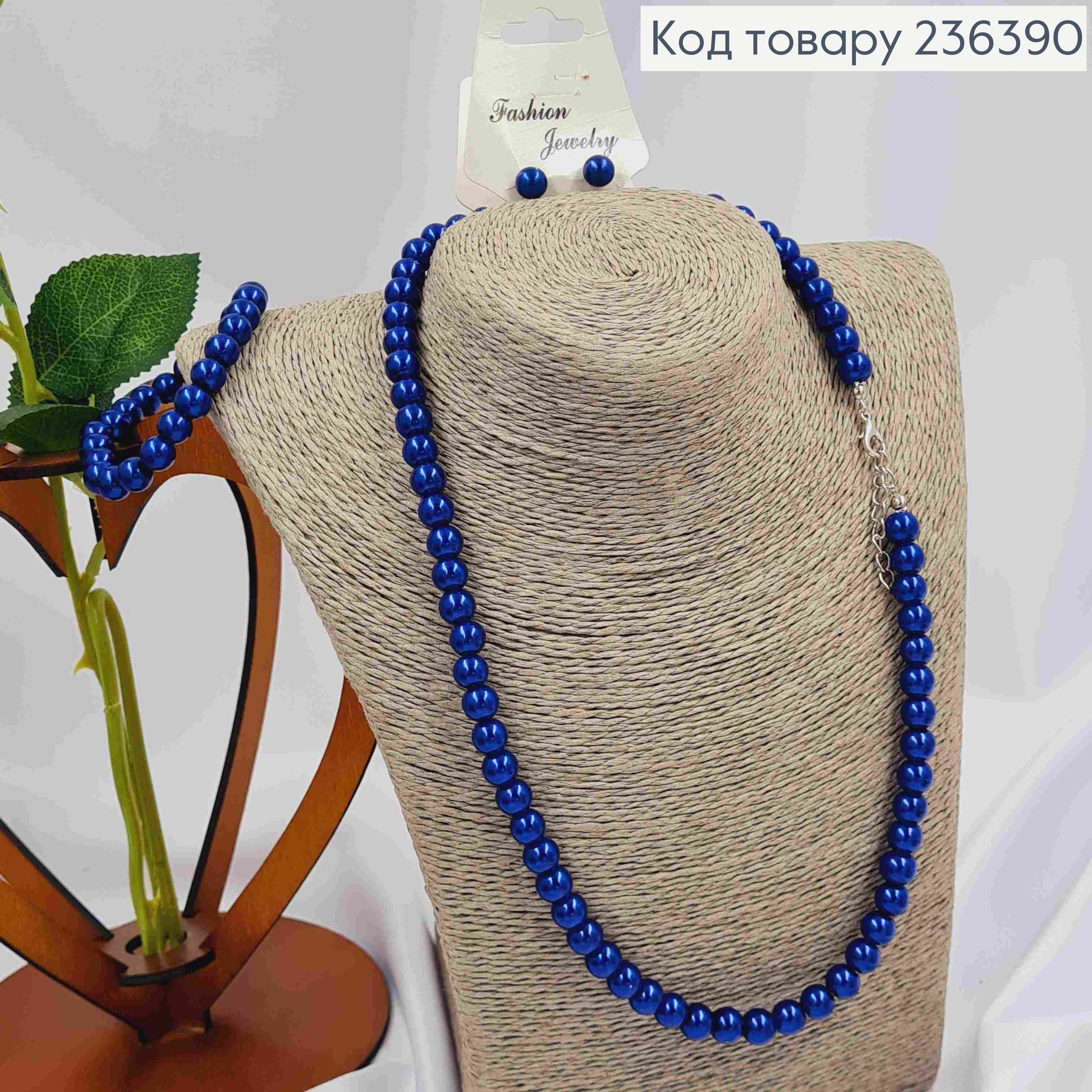 Набор Синего цвета, Бусы из жемчужин 8мм, (50+3см), Браслет 8мм, (16см), Серьги гвоздики 8мм