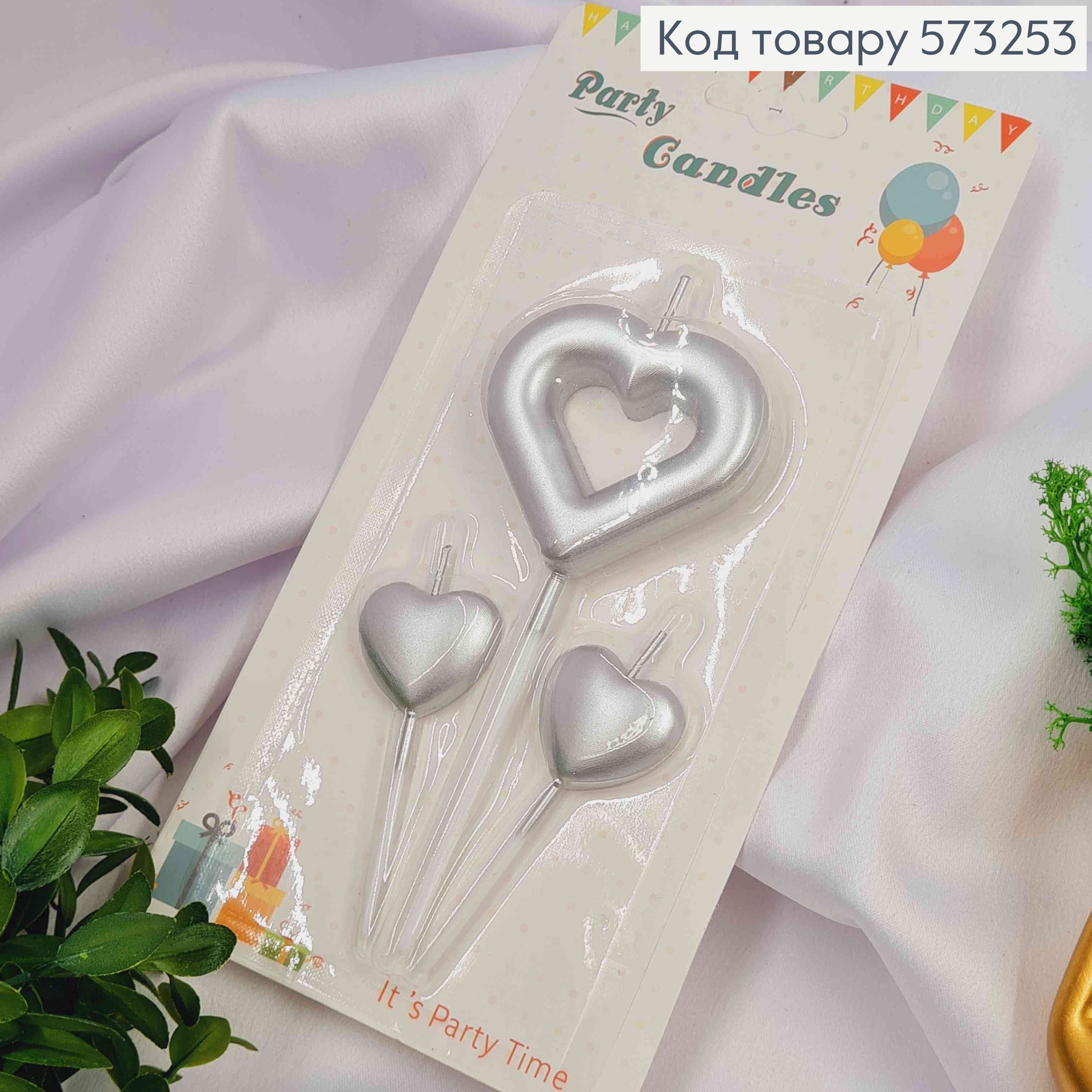 Набор свечей СЕРДЦА, серебряного цвета, размером 5,5см и 3см