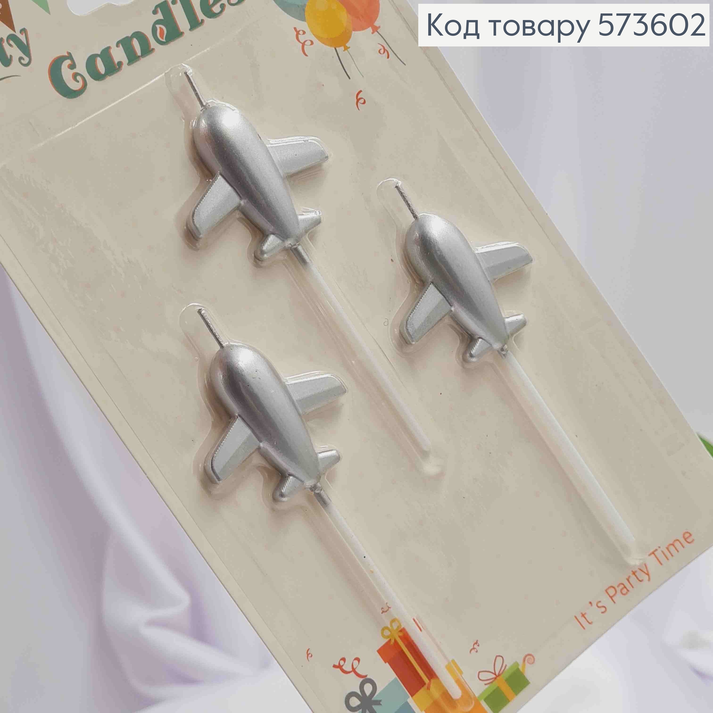 набор свечей в торт (3шт), САМОЛЕТКИ серебряного цвета (4,5+7см)