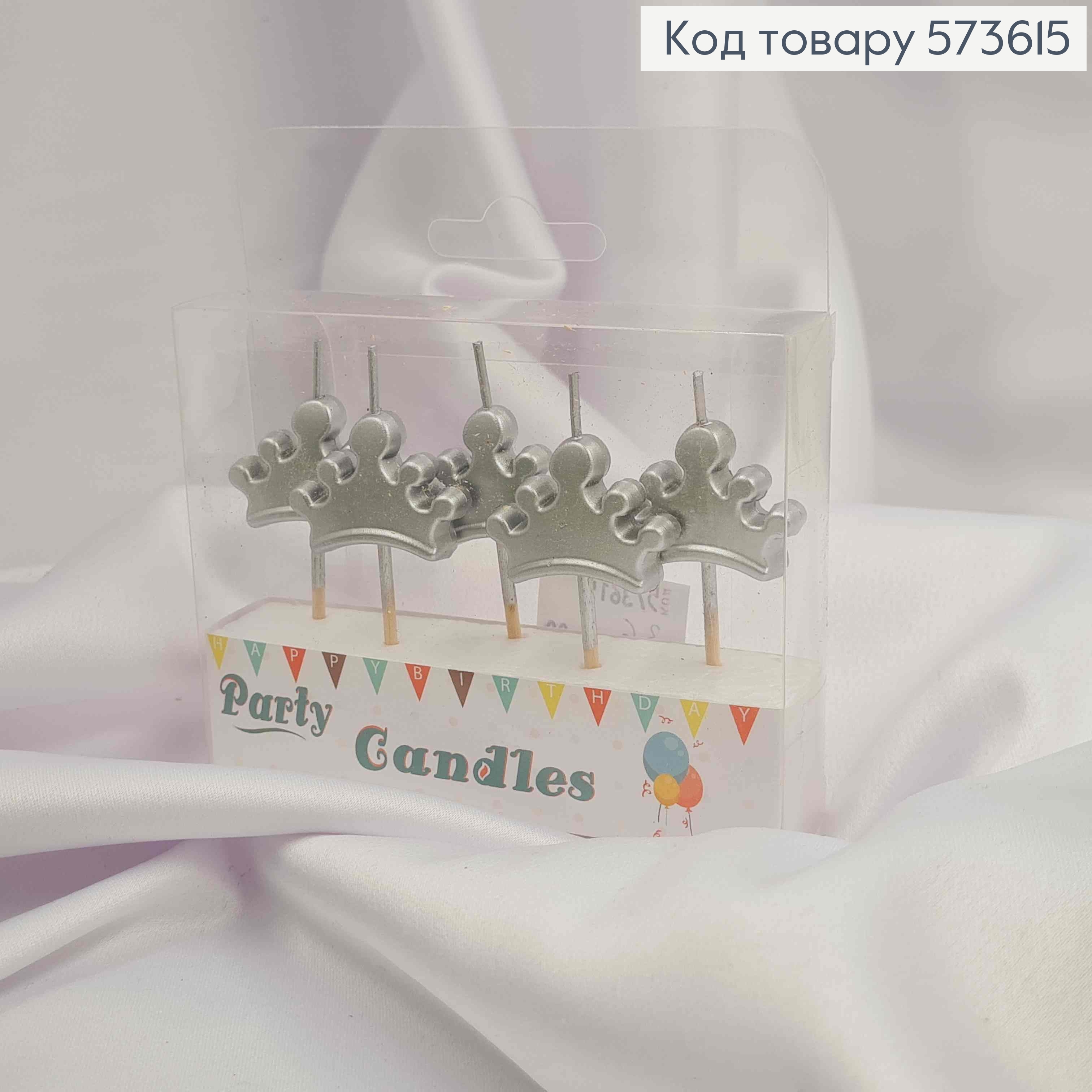 Набор свечей в торт (5шт), КОРОНЫ серебряного цвета (размер 2*3см)