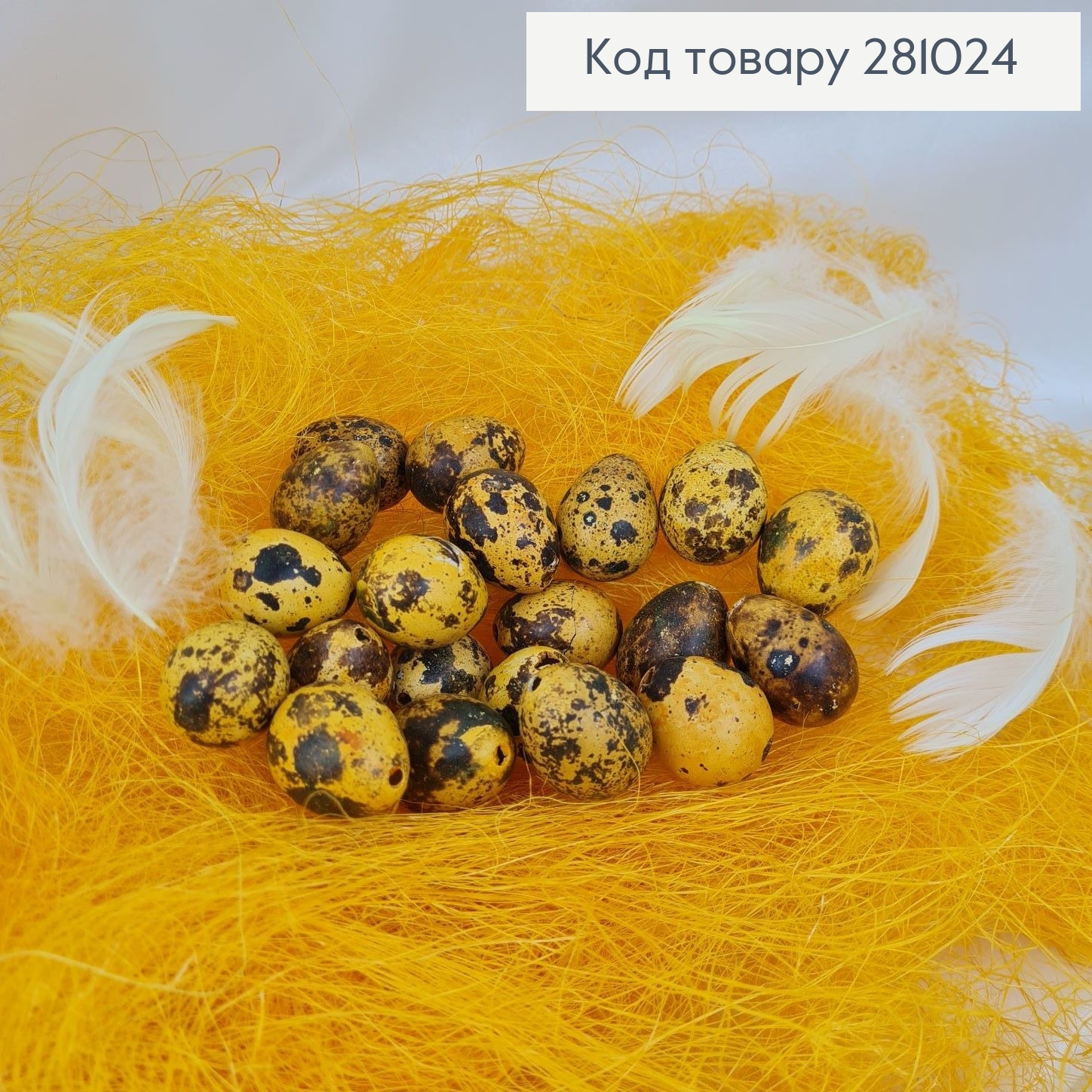 Набор перепелиных яиц (6шт/уп), бархат, ярко-желтого цвета, (пластик), 4*3см. 282202 фото