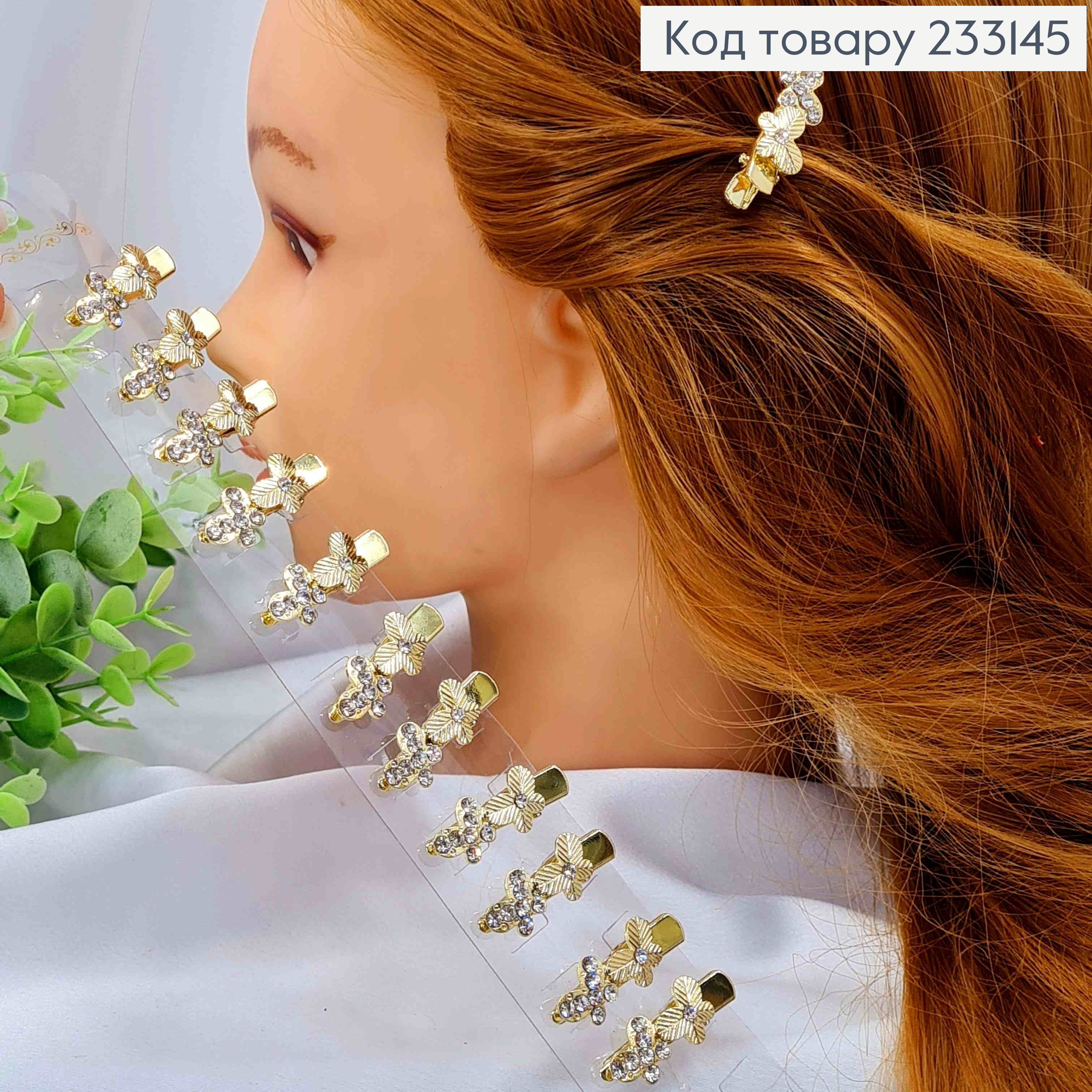 Набор заколка стрела (12шт/уп) БАБОЧКИ с камнями и тиснением, Золотого цвета, размером 3см