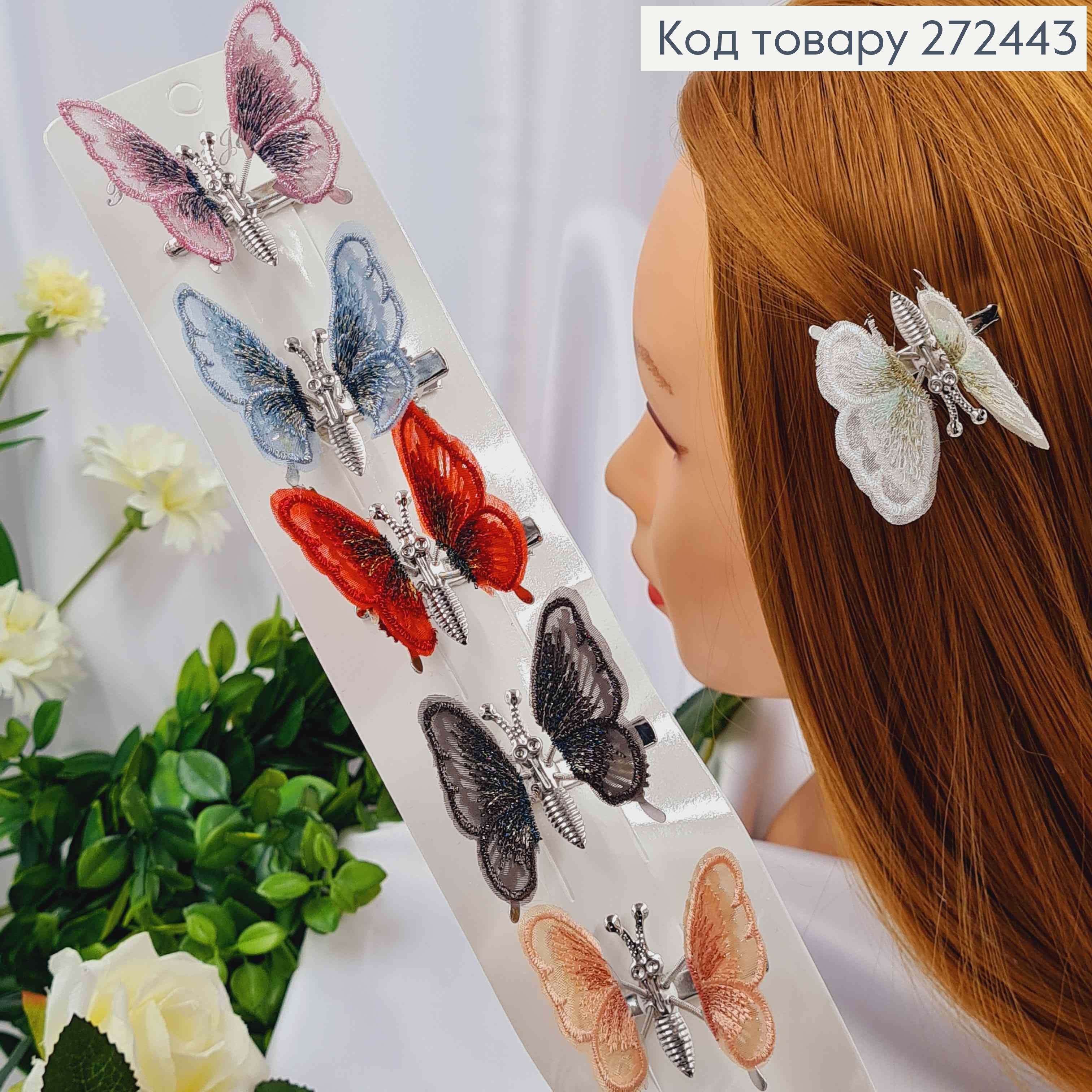 Набор заколок стрел (6шт) БАБОЧКА (5,5*4см) РАЗНОЦВЕТНЫЕ (ткань) с крылышками на пружинках