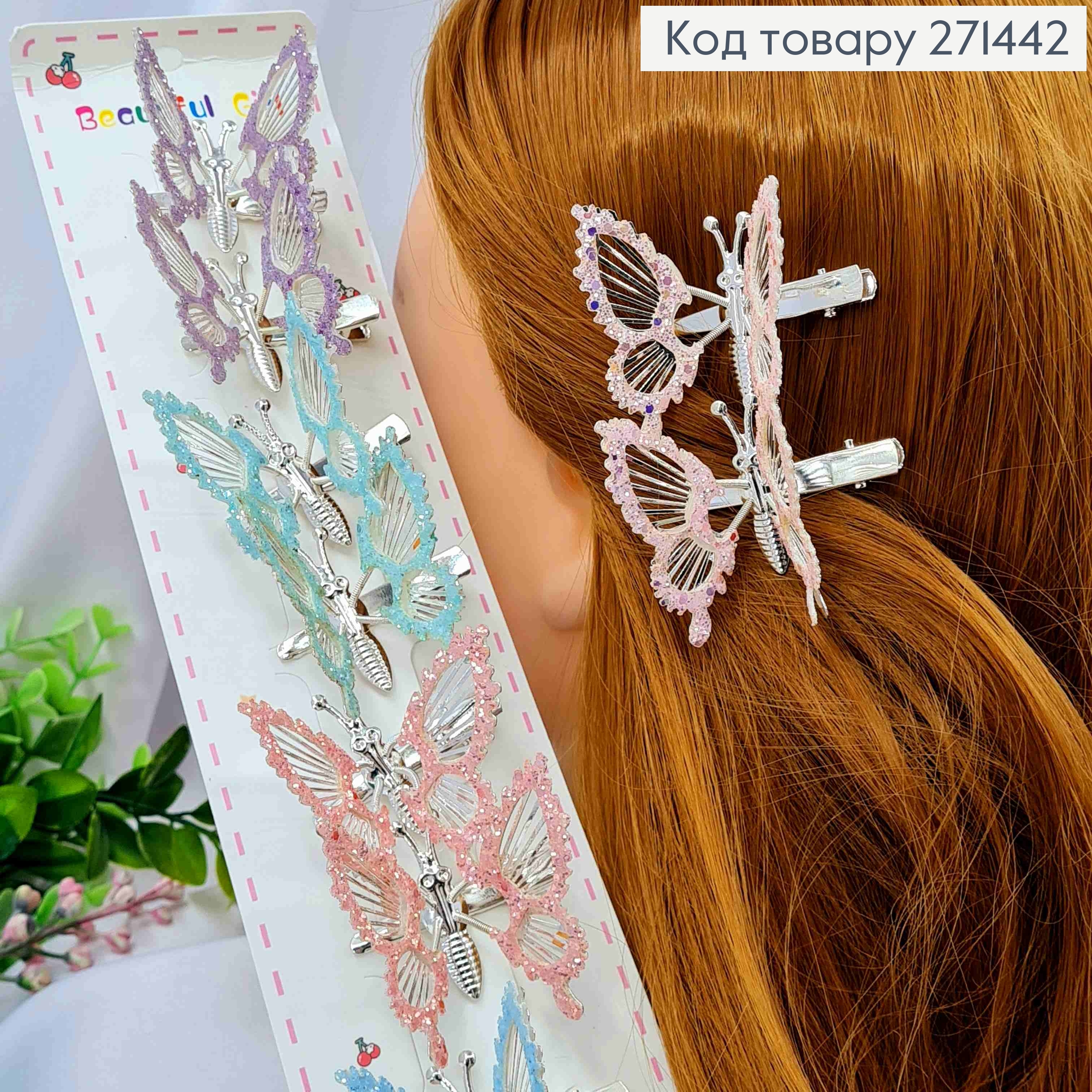 Набор заколок Стрела (12шт), БАБОЧКА, с подвижными крыльями, в пайетках, Серебряного цвета, 5,5*4,5см