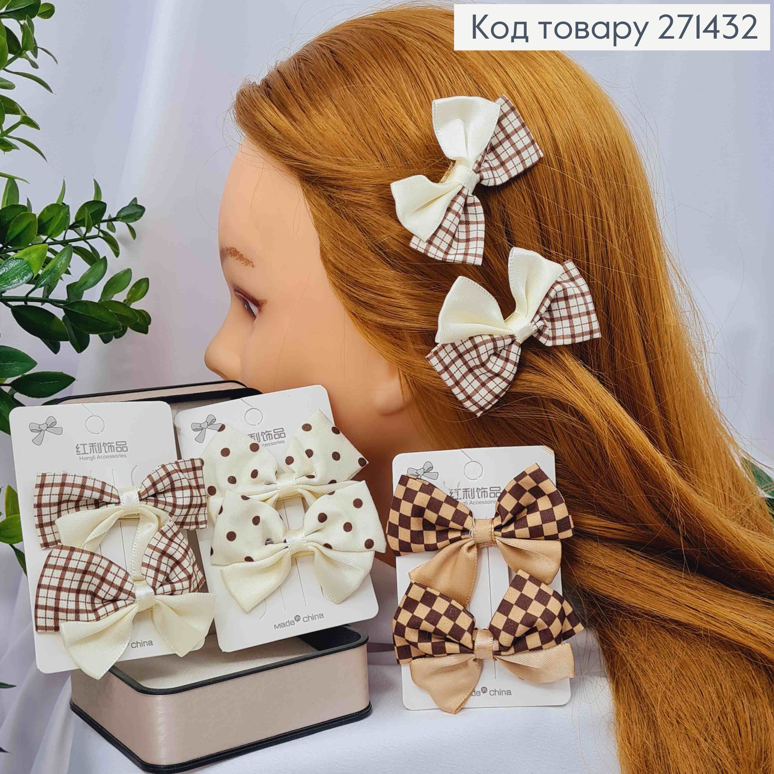 Набор заколок Стрела(12шт/6пар) БАНТИК в клетку и точку, Пастельные цвета, заколка 3см,Бант 5см