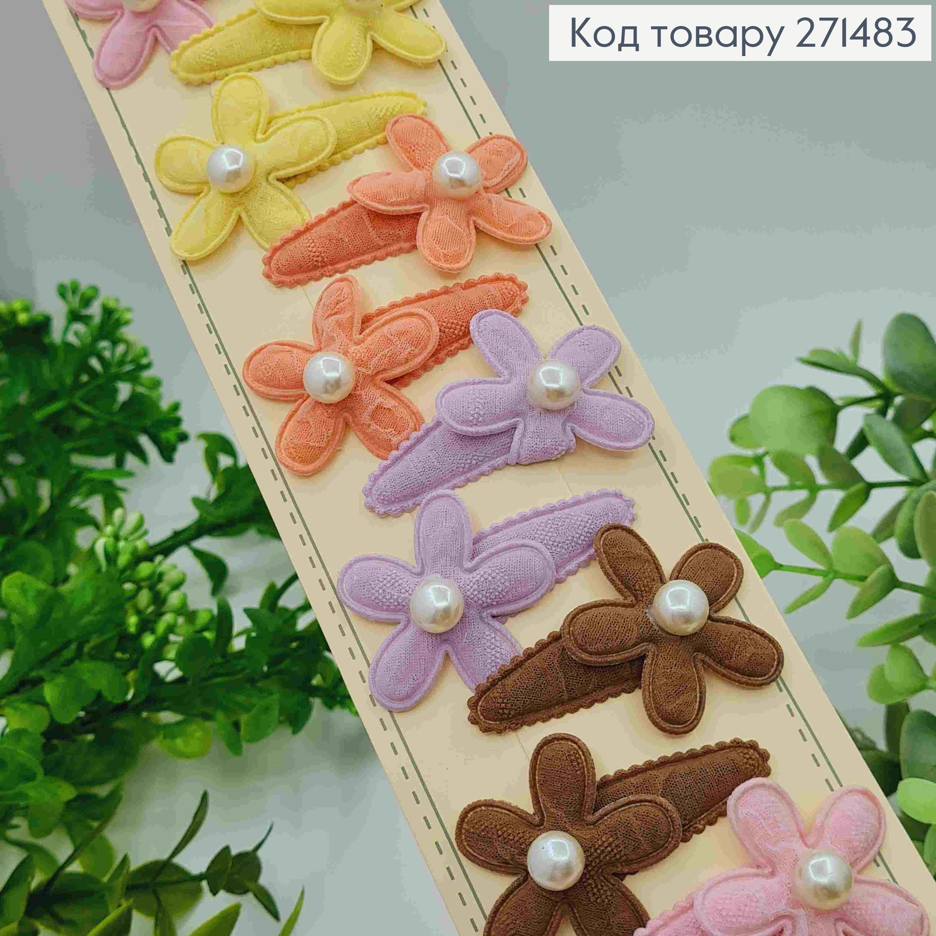 Набір заколок Тік-так (20шт), КВІТОЧКА з Перлинкою, Яскраві кольори, заколка 4см, квітка 3см