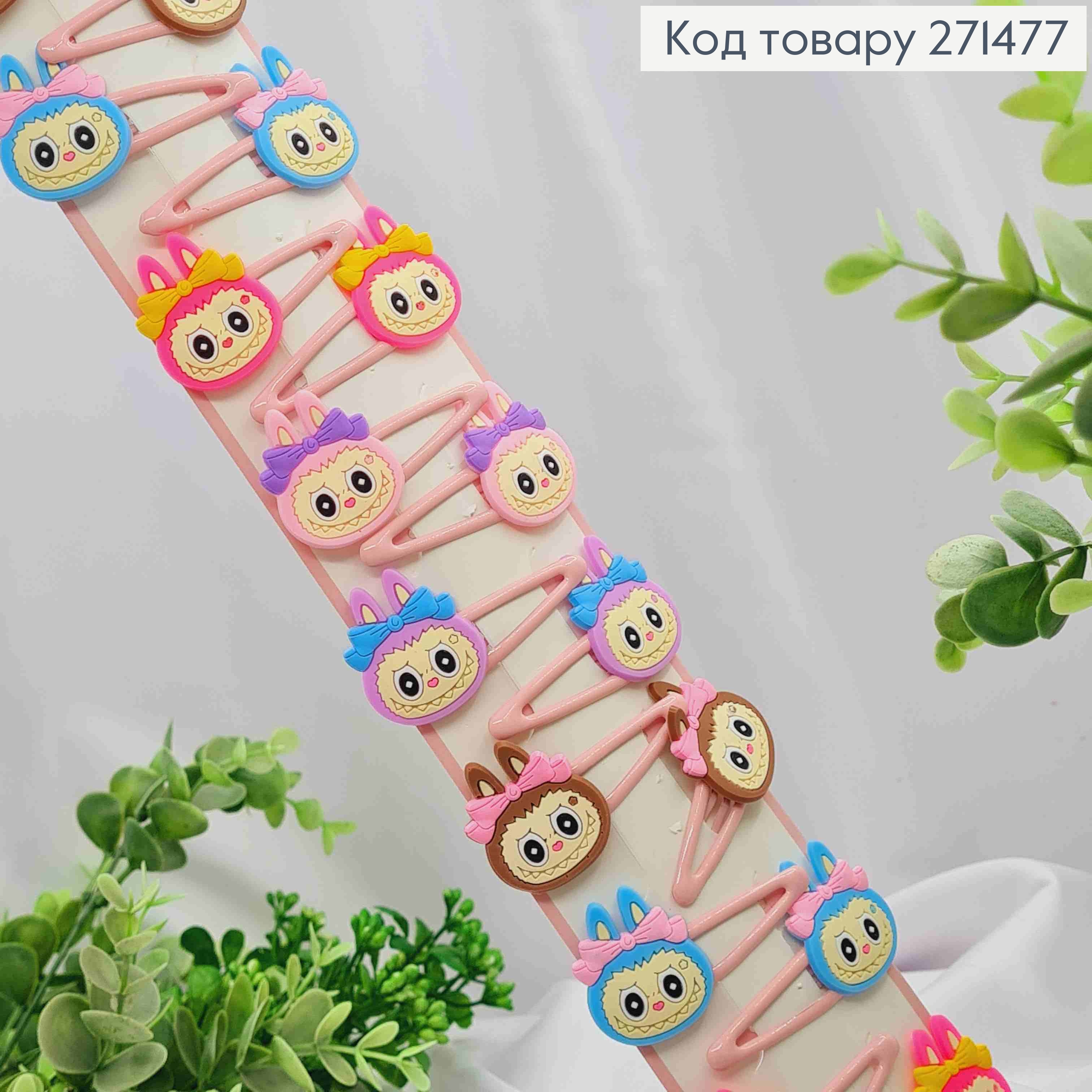 Набор заколок Тик-так (20шт), LABUBU, Яркие цвета, заколка 5см, лабубу 2,5*3см