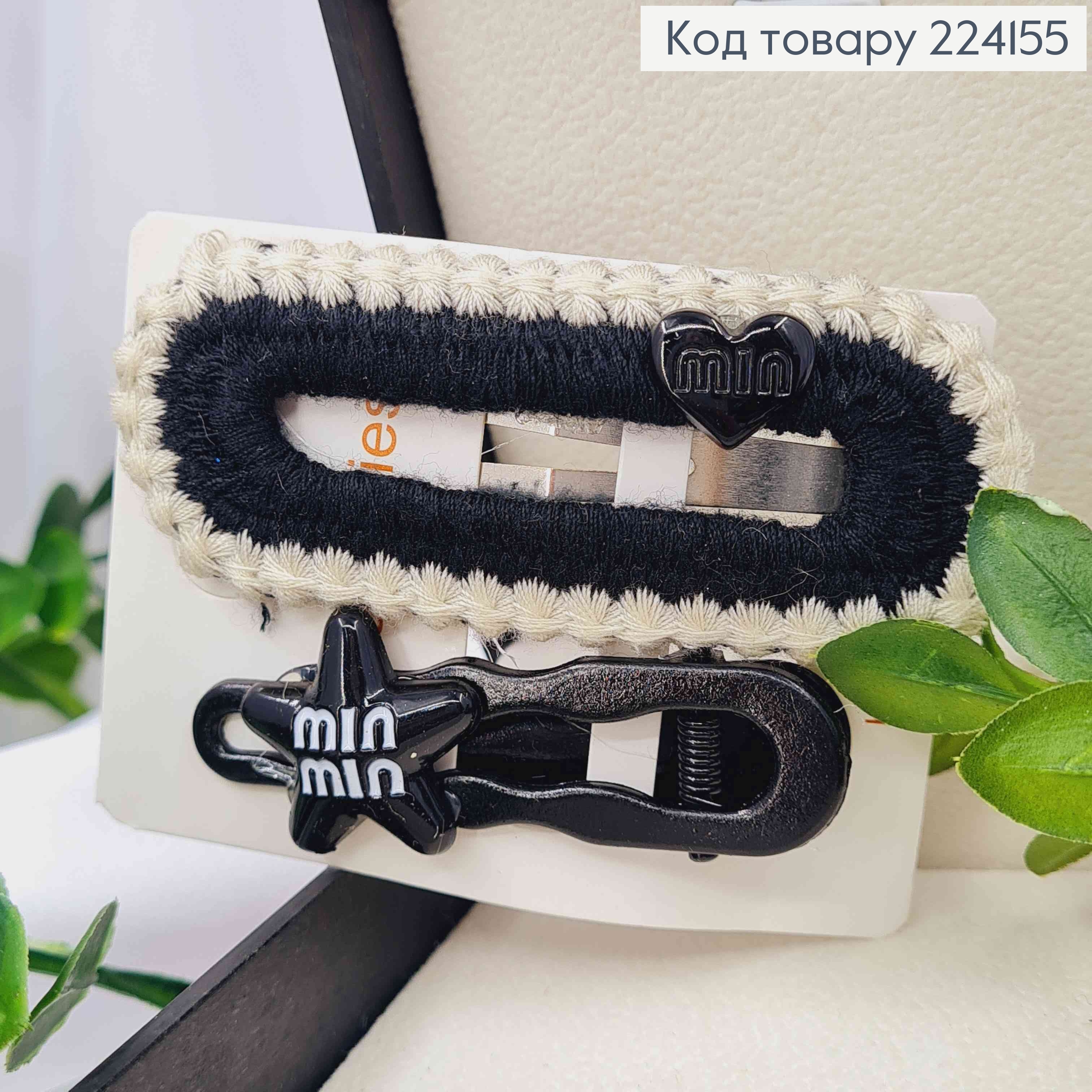 Набор заколок Тик-Так+Стрела со "Звездой и Сердцем", "MIN MIN", Черного цвета, 6+7,5см