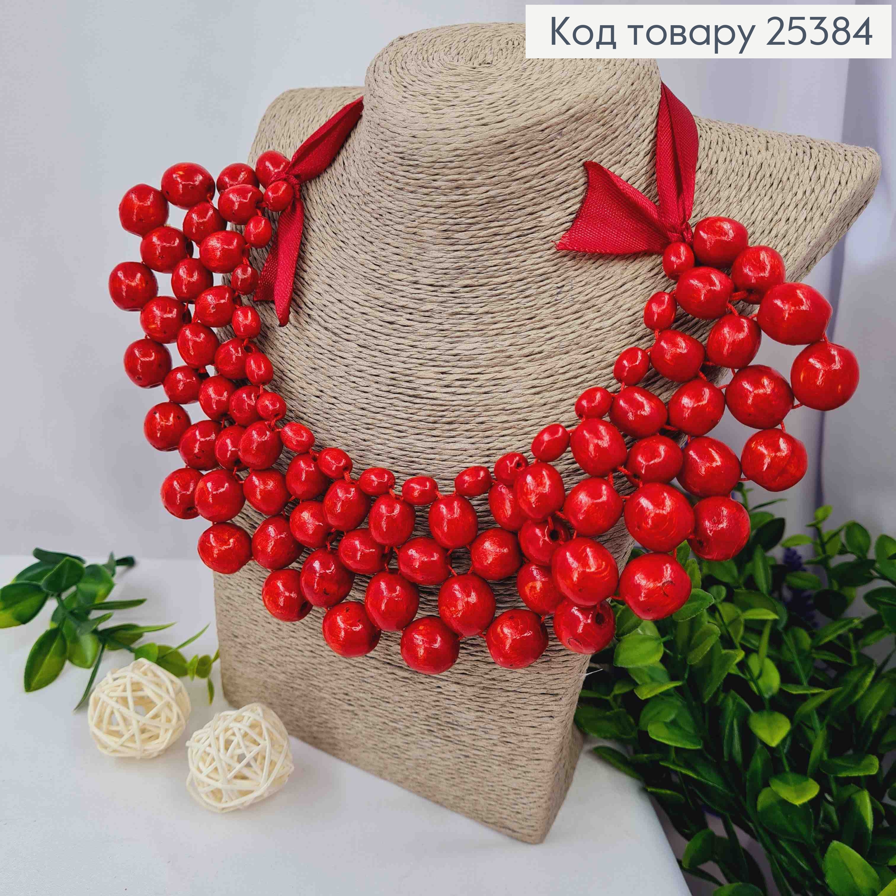 Ожерелье деревянное, КРАСНОГО цвета с Киточками, 65см, ручная работа 25414 фото
