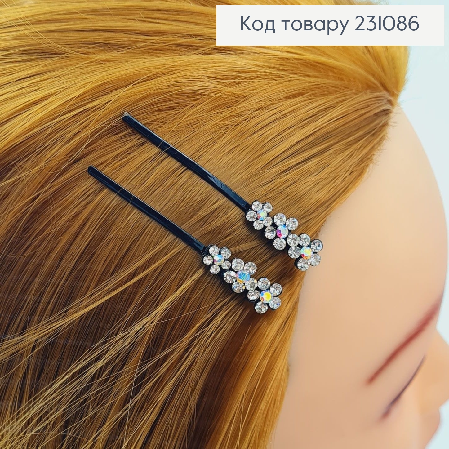 Невидимка металл 6,3 см черная с цветами 2 шт / уп цена за уп.