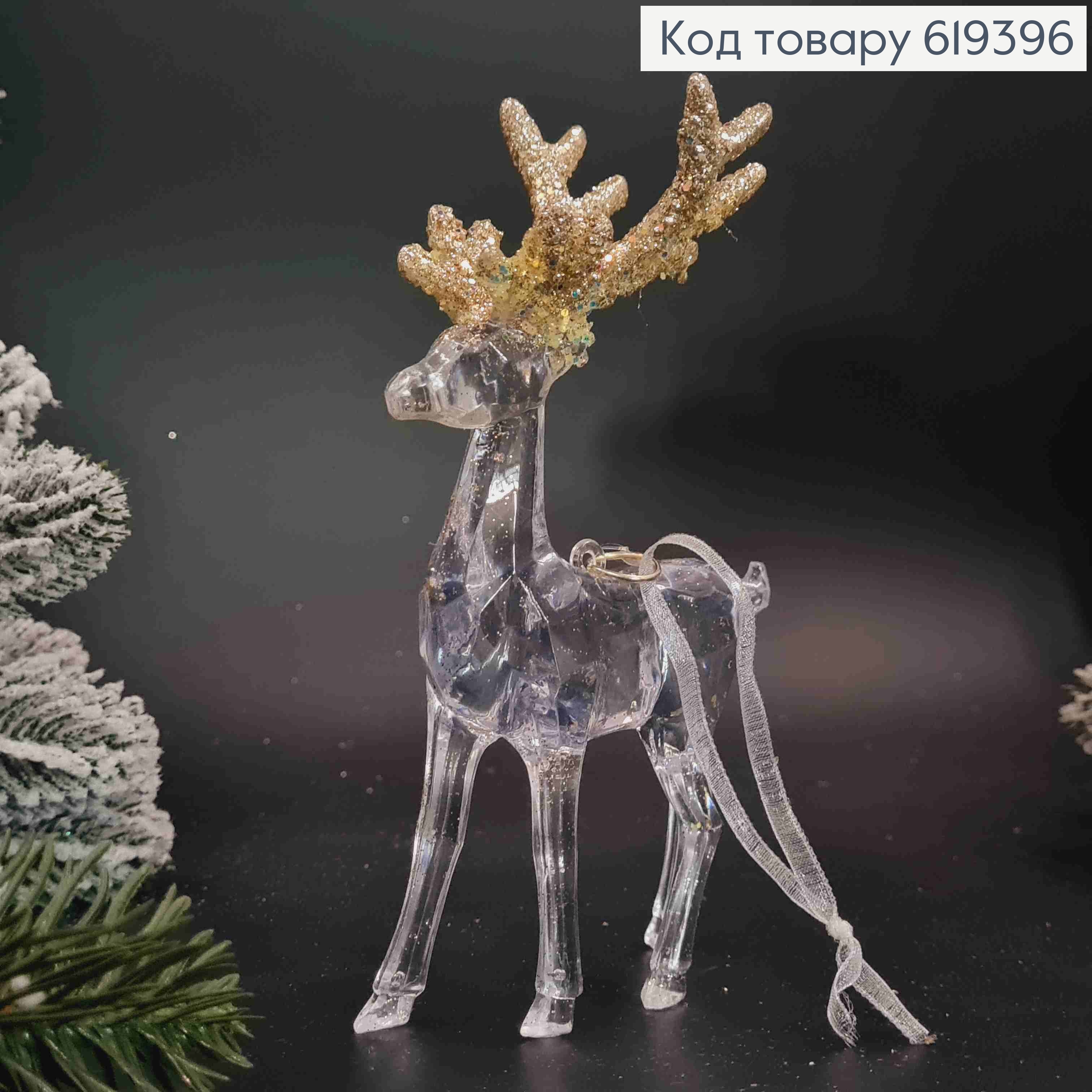 Новогодняя фигура "ОЛЕНЬ", цвет ПРОЗРАЧНЫЙ+блеск ЗОЛОТО, пластик, 15*7см, Украина