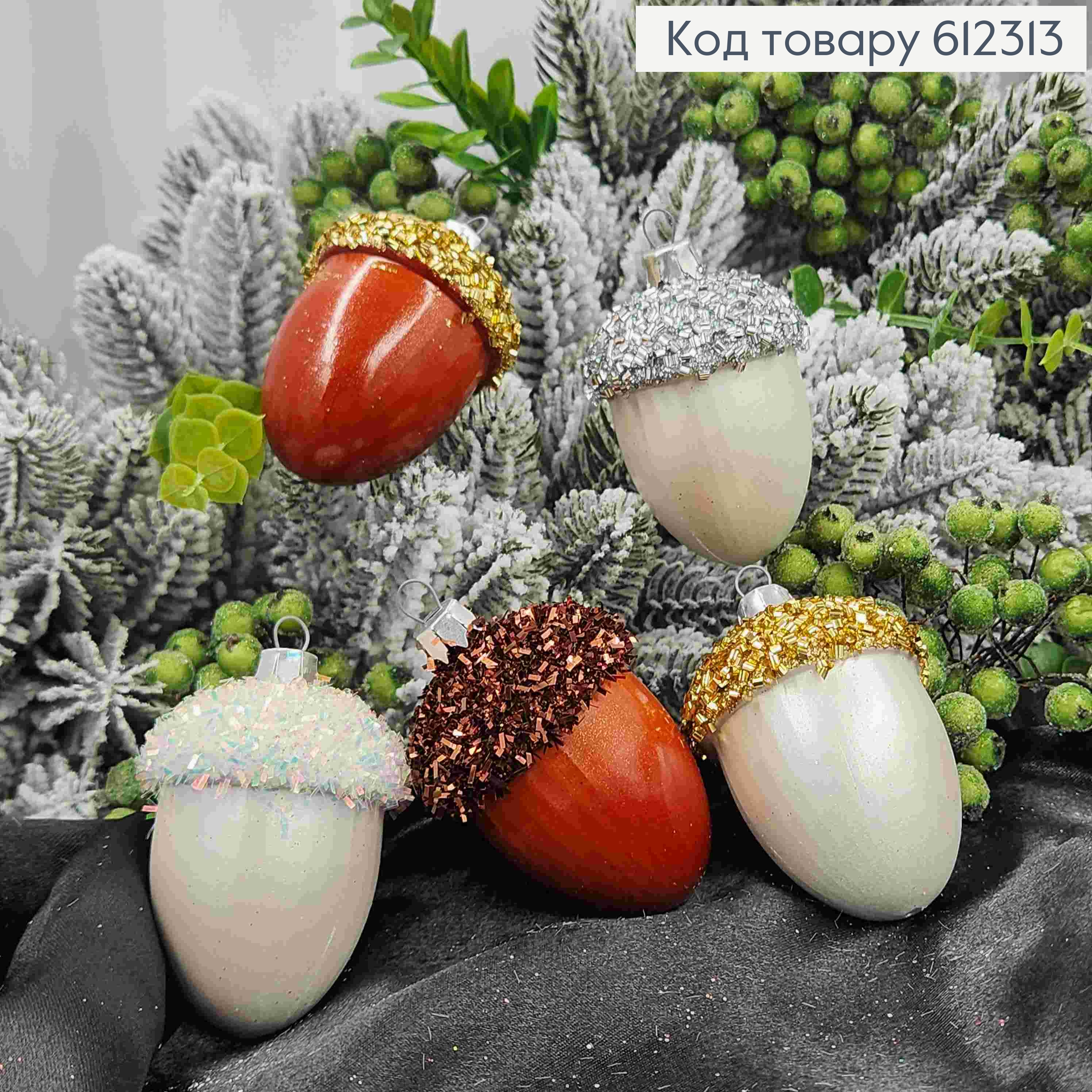 Новогодняя фигура ЖЕЛУДЬ с блестящей шапочкой, размер 7*5см, в асорт. новогоднее украшение, пластик,, Украина.