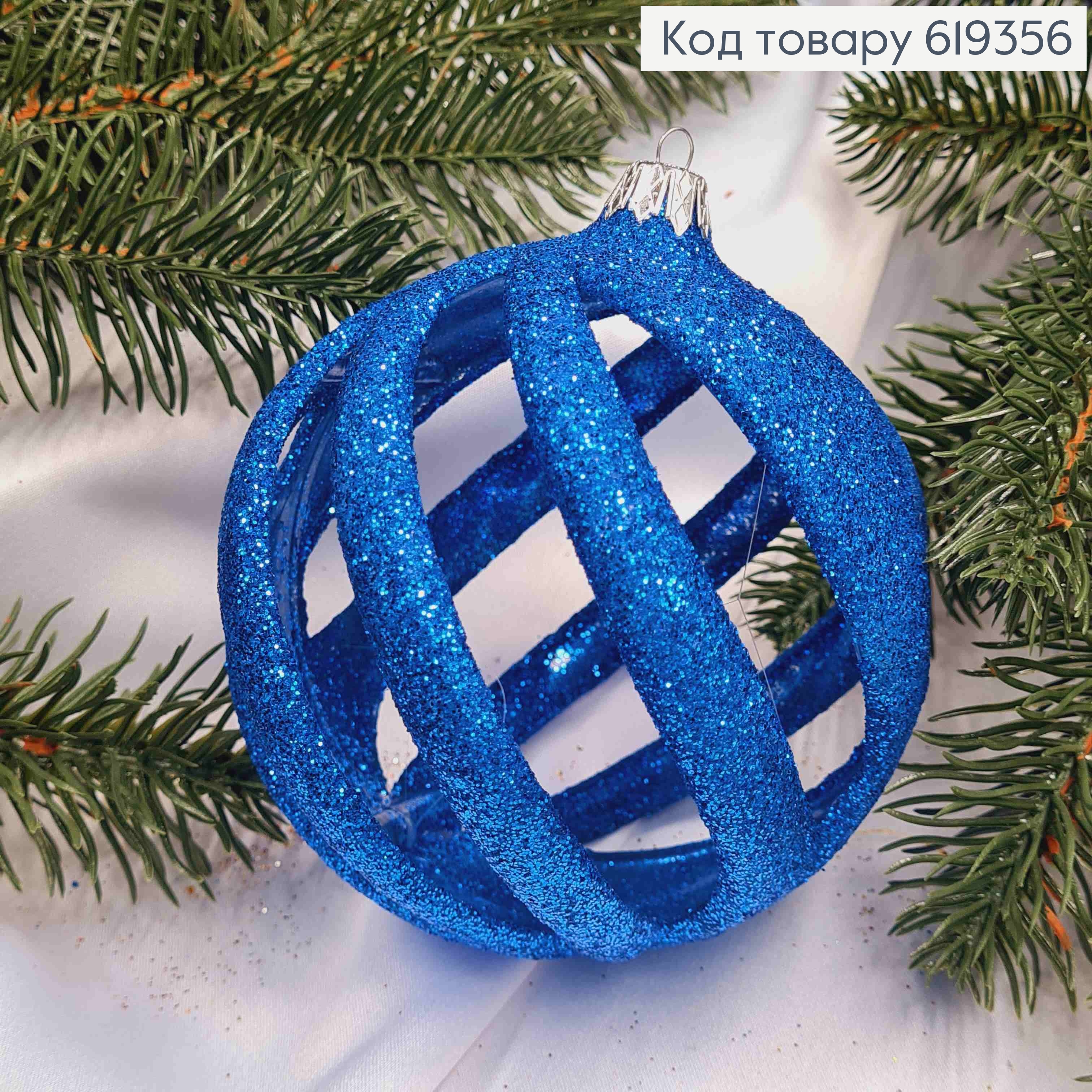 Новогодняя игрушка круглая "КРУЧЕНАЯ" СИНЯЯ с блеском, пластиковая, диаметр 10см, Украина