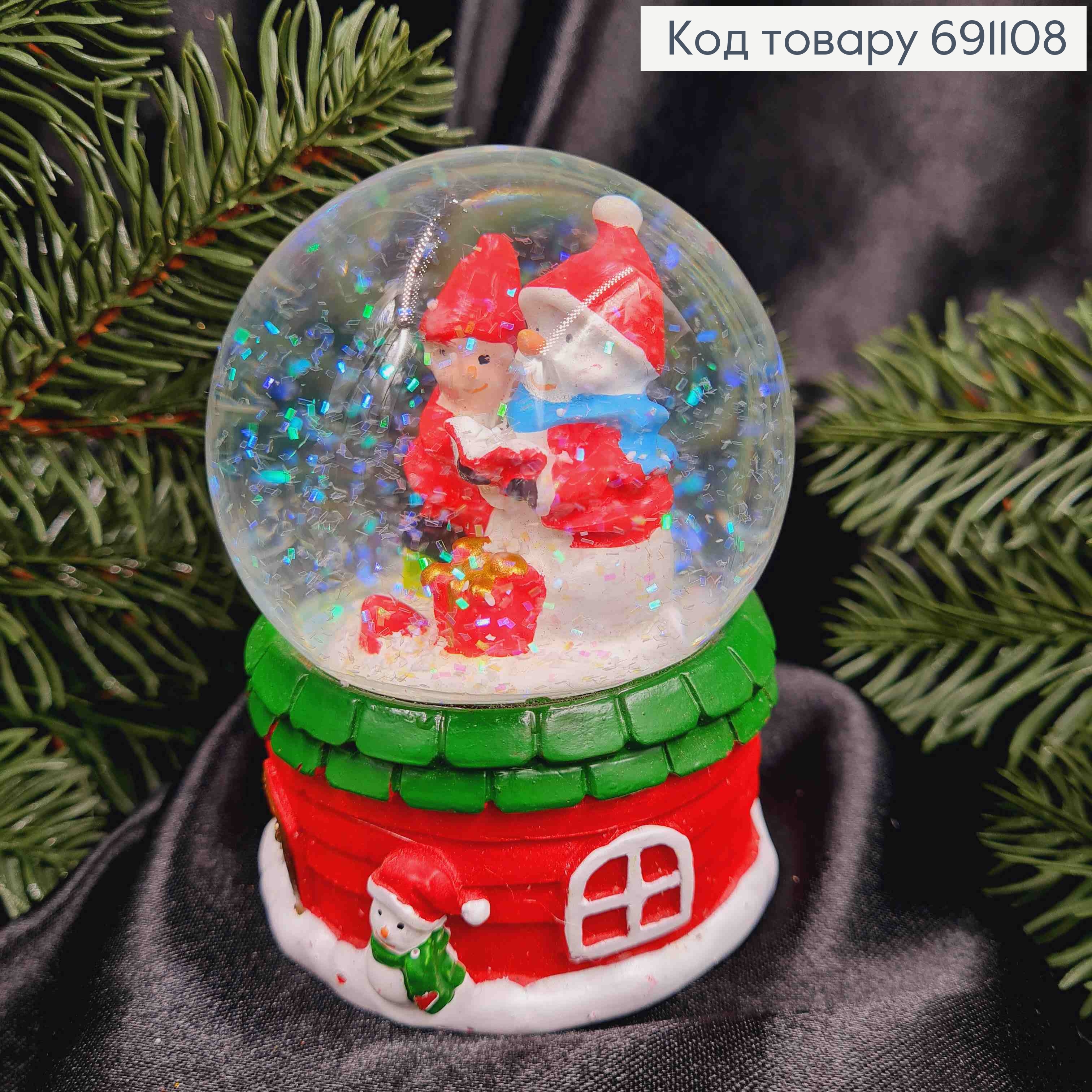 НОВОГОДНИЙ ШАР, стеклянный на керамической основе. "СНЕГОВИЧОК", высота 9см, диаметр 7см