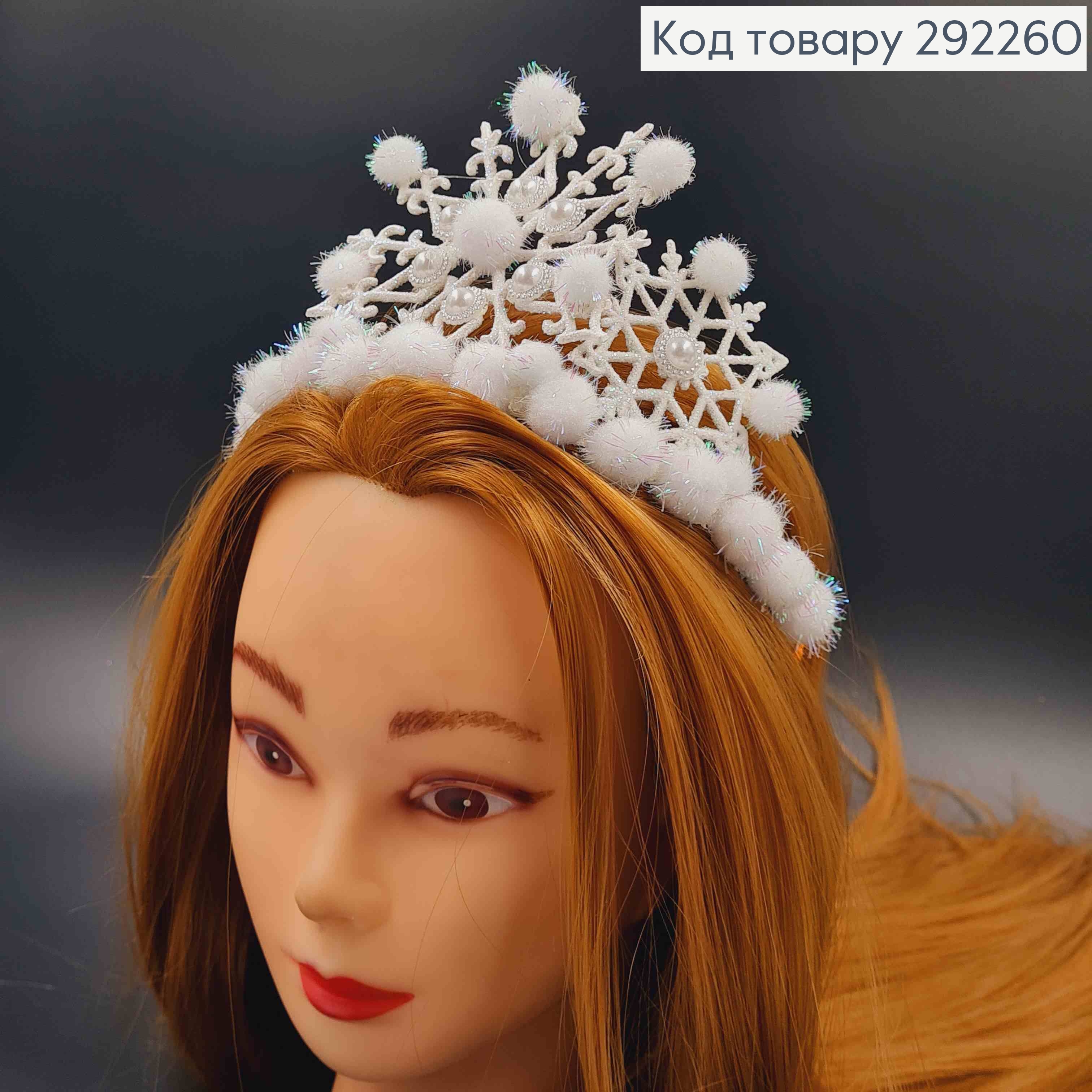 Обруч корона, Снежинка, с жемчужками и помпонами, 10,5см.