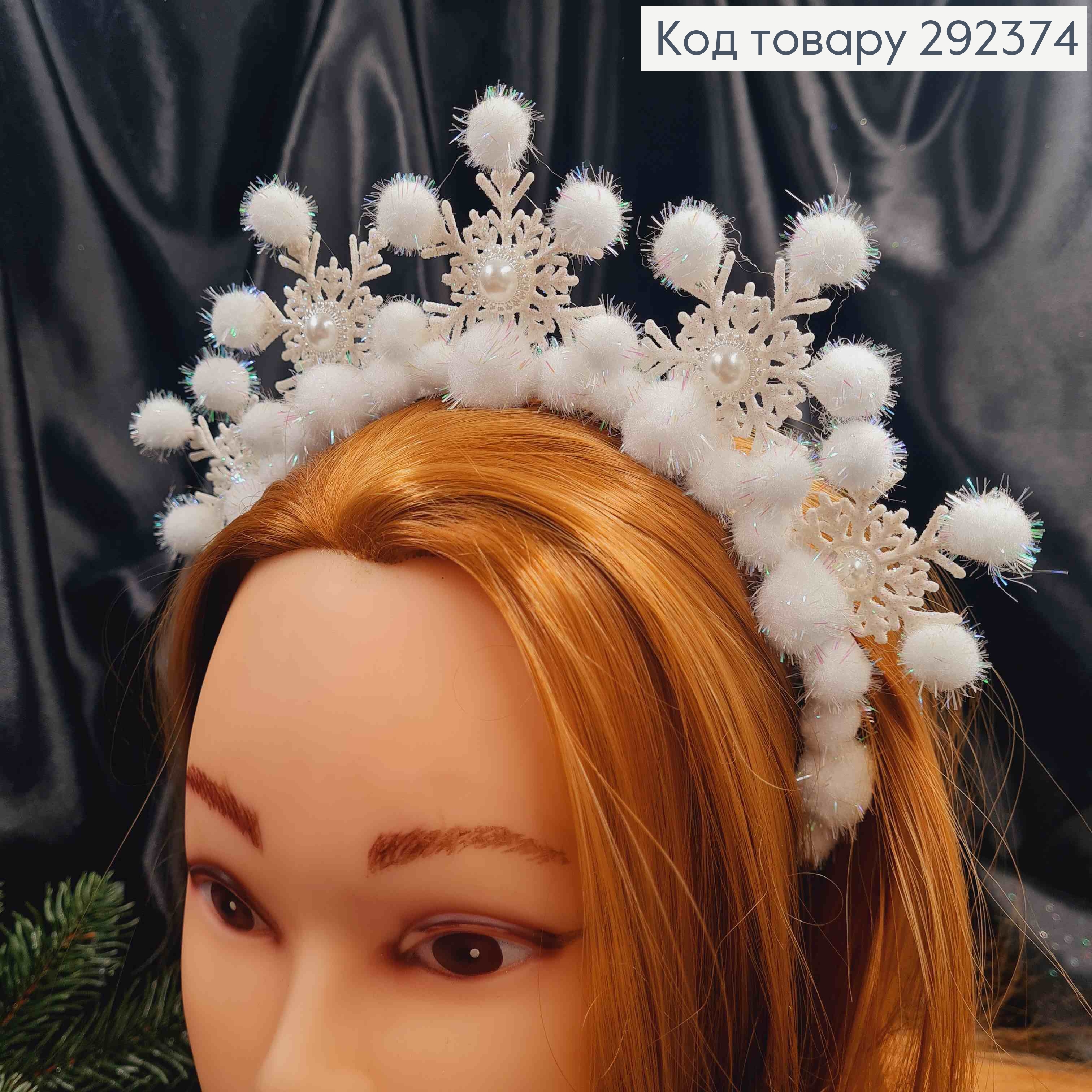 Обруч металл "Три полснежинки" с Помпонами, высокая точка 8 см, ручная работа, Украина 691181 фото