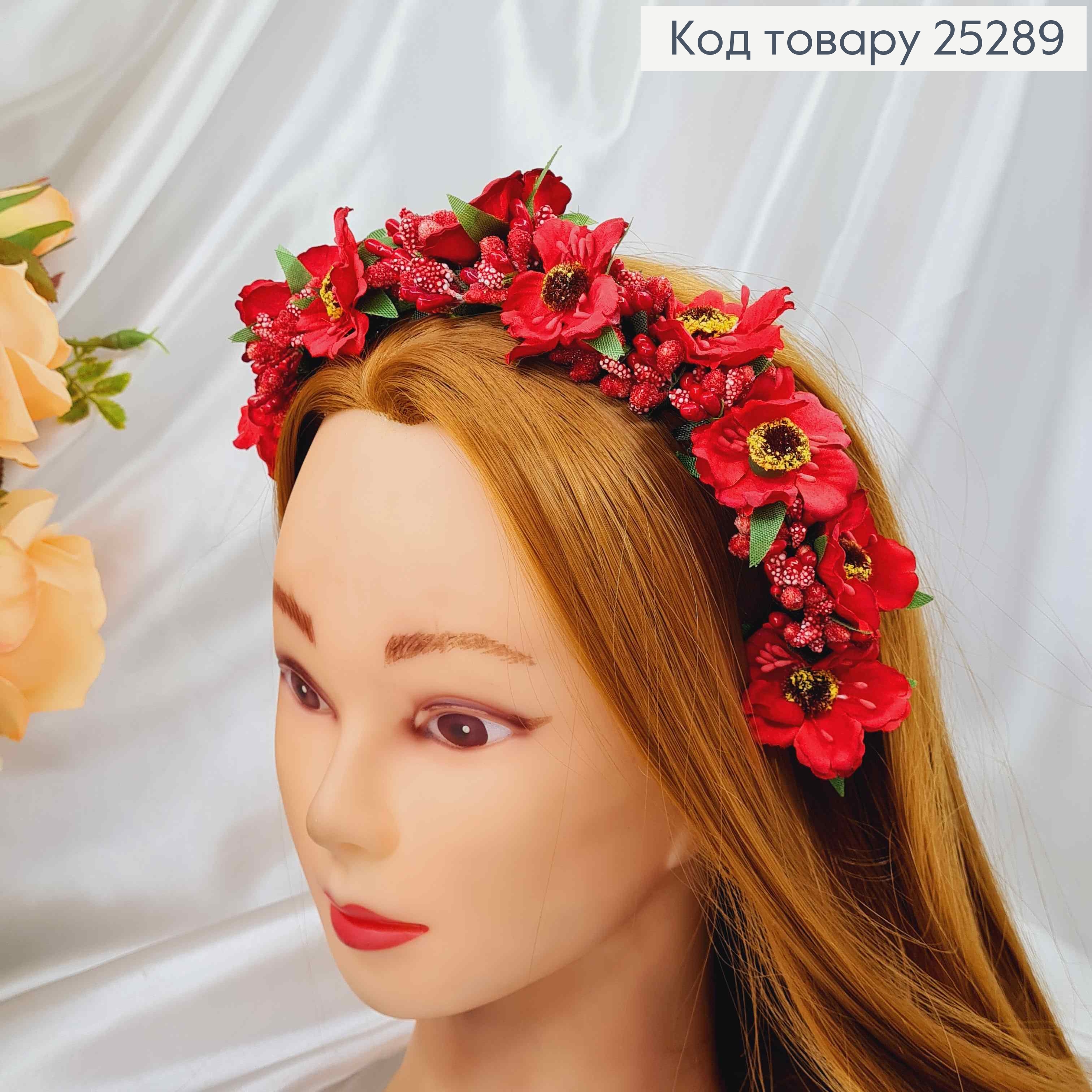 Обруч-венчик, плетеный, Розы с Калиной, КРАСНОГО цвета, ручная работа, Украина. 287040 фото