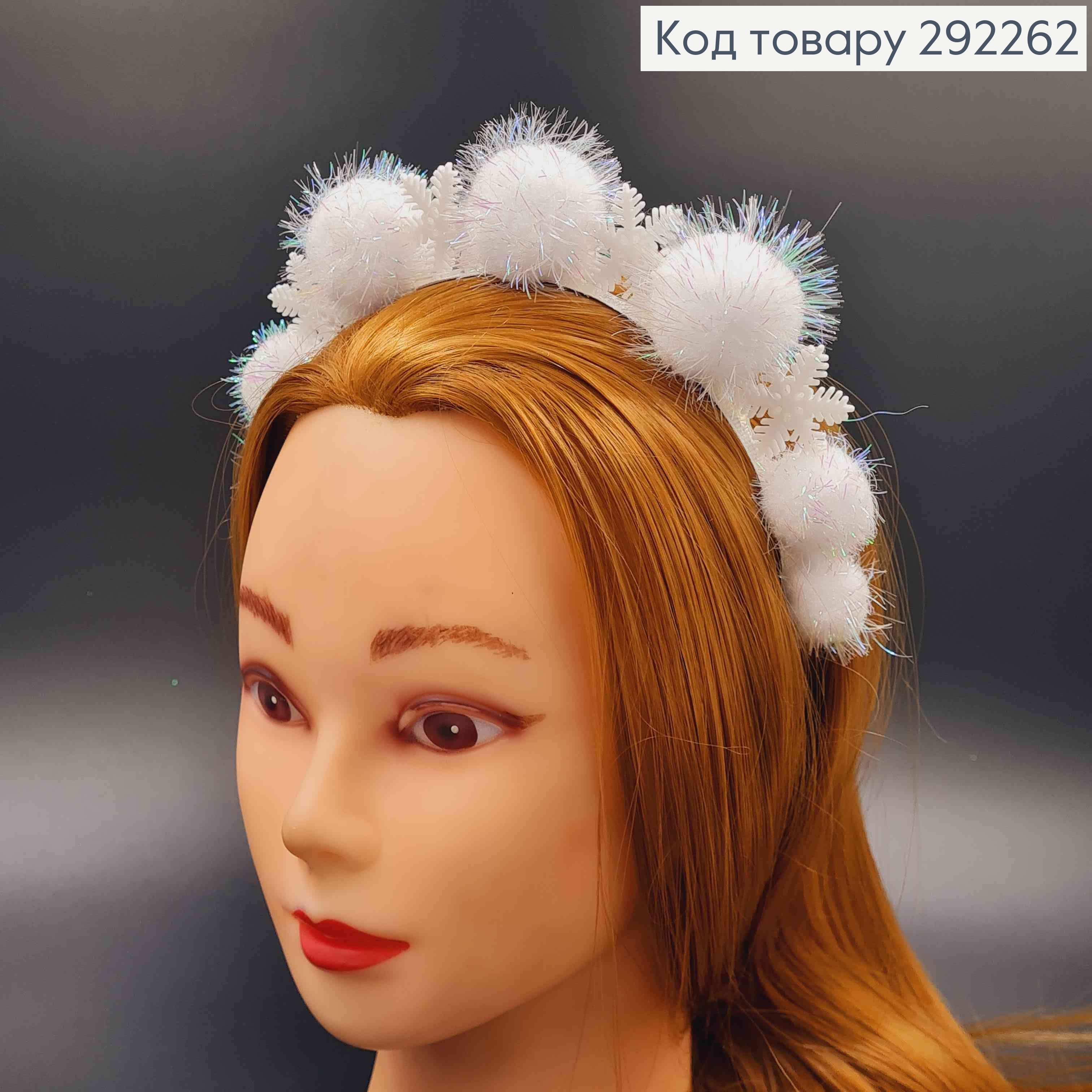 Обруч со Снежинками и большими помпонами, 3,5см.