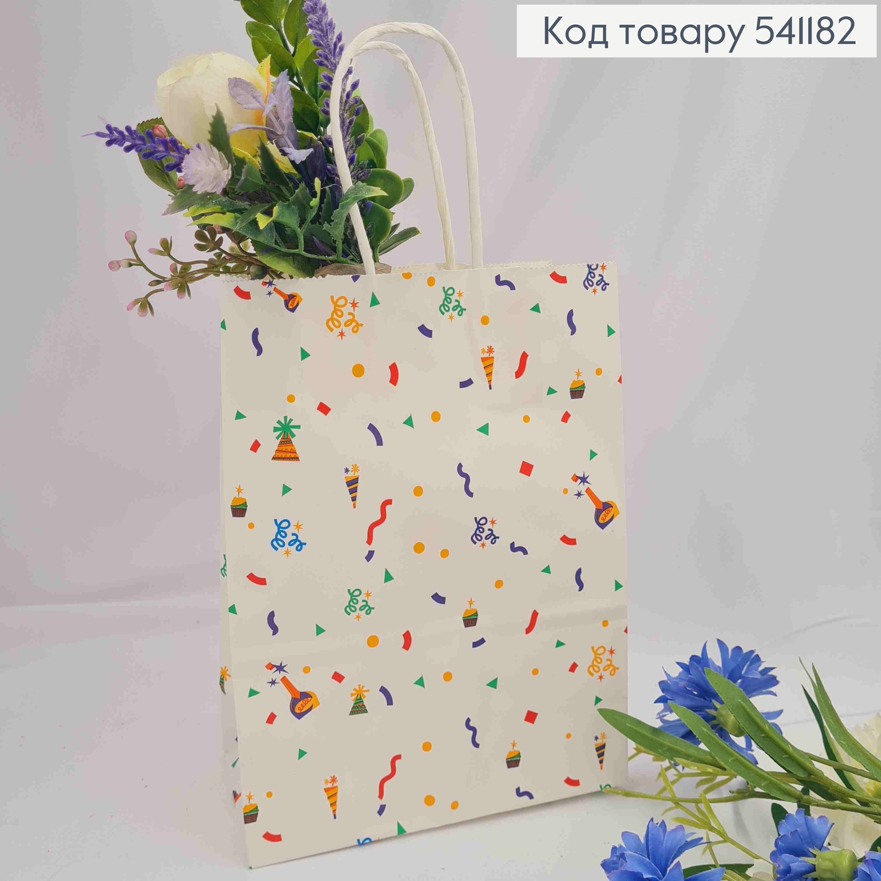 Пакет крафтовый, 16*22*8см, Белый с цветным конфетти.