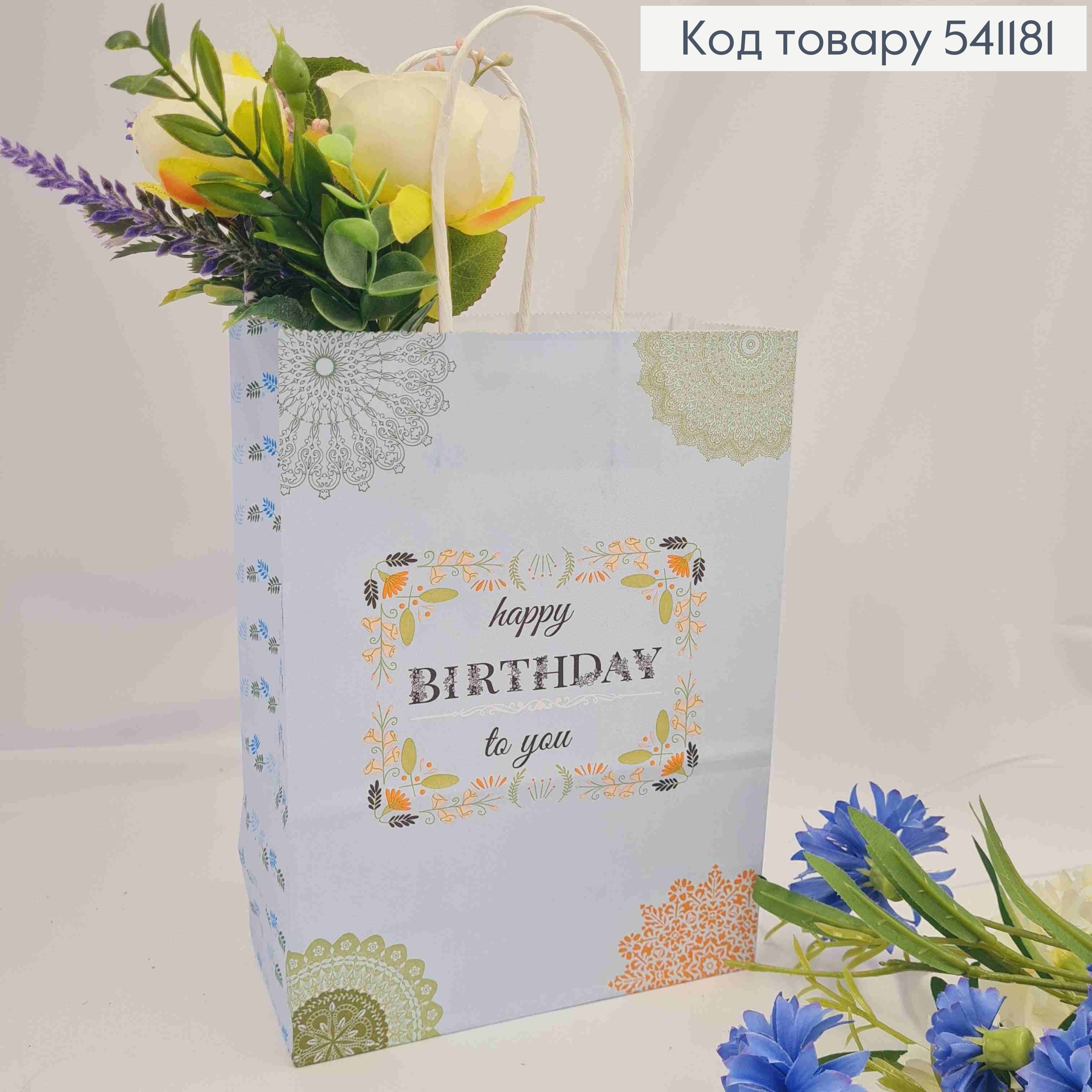 Пакет крафтовый, 16*22*8см, Голубой с надписью "Happy birthday"