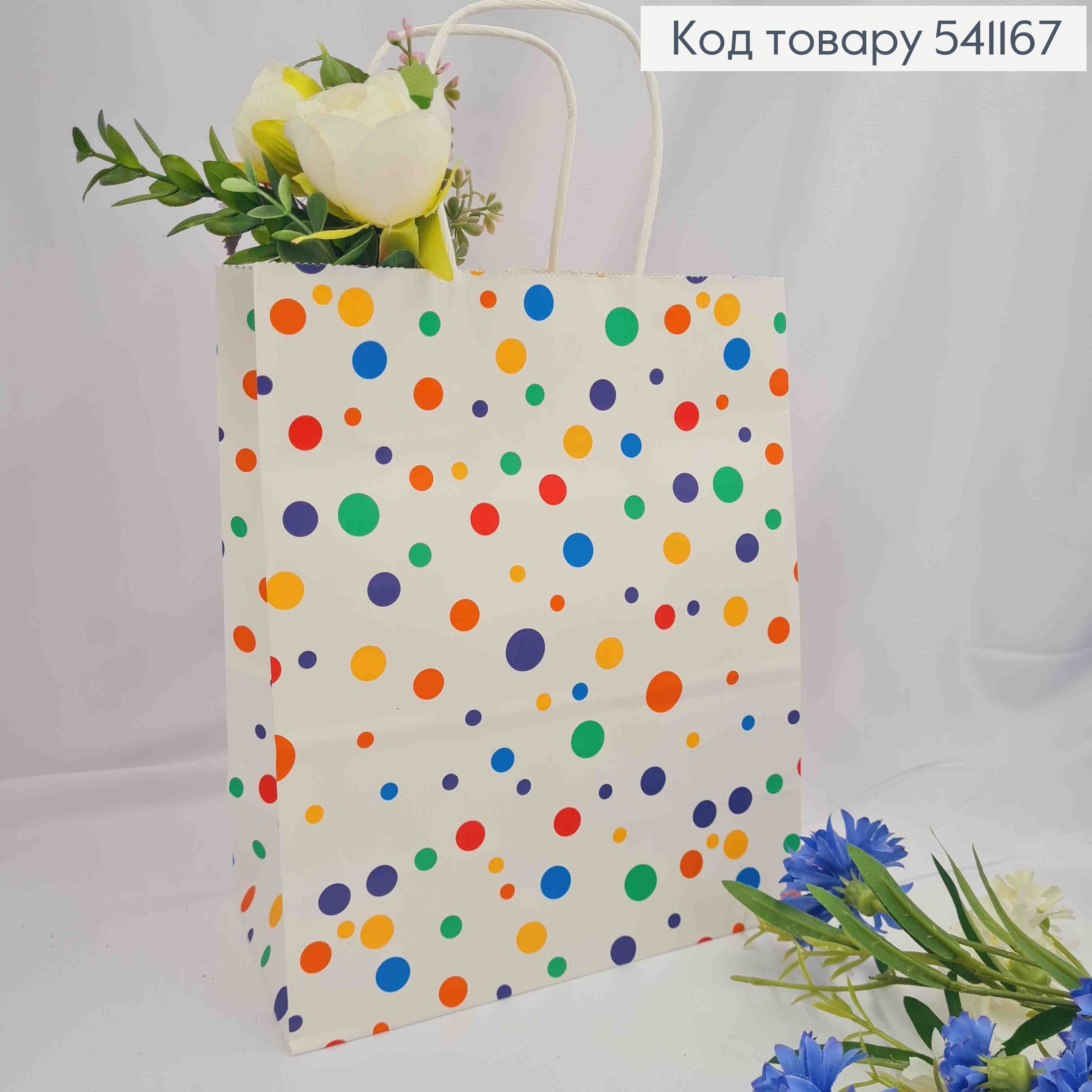 Пакет крафтовый, 22*27*11см, Белый в Цветной горошек.