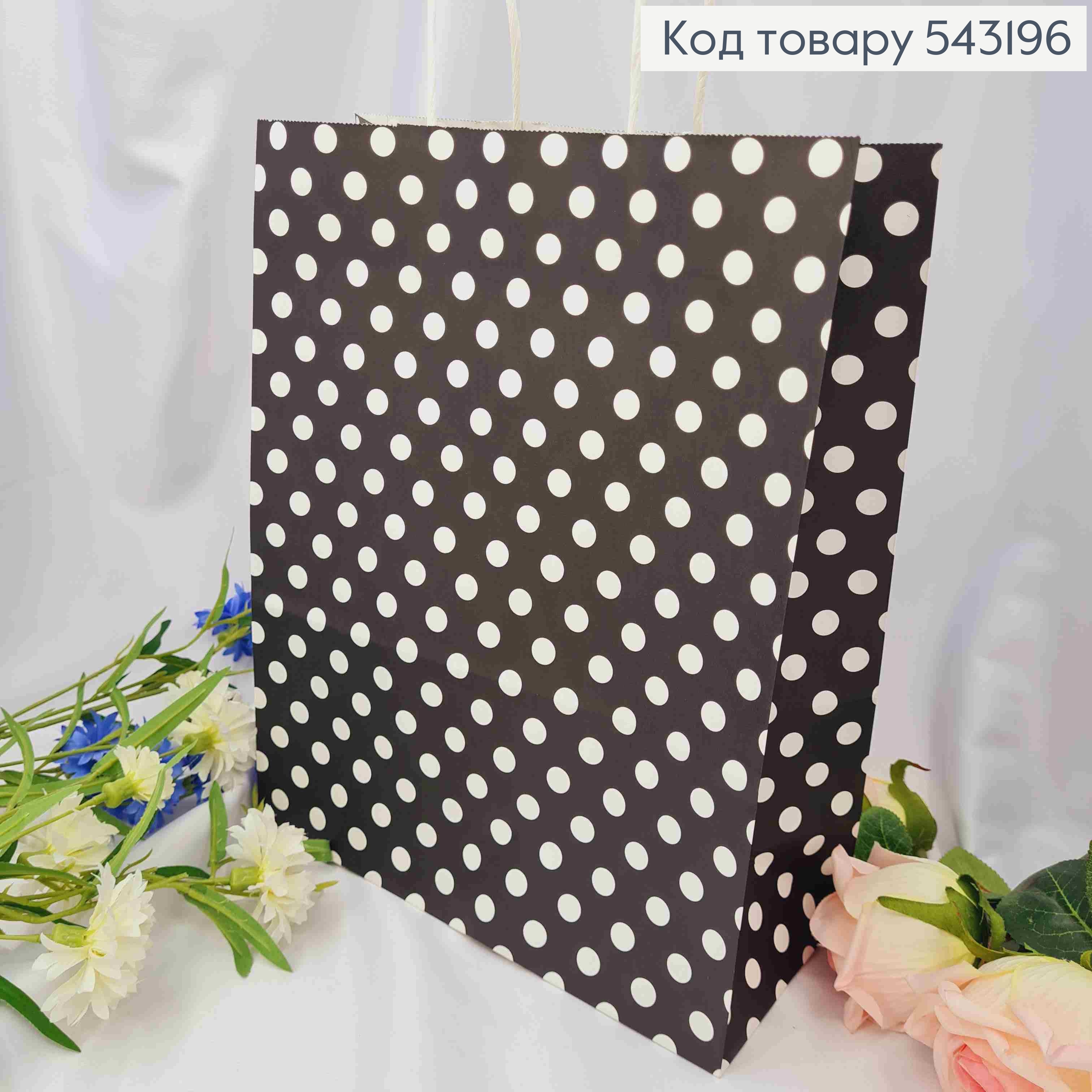 Пакет крафтовый, 26*33*12см, Черный в горошек