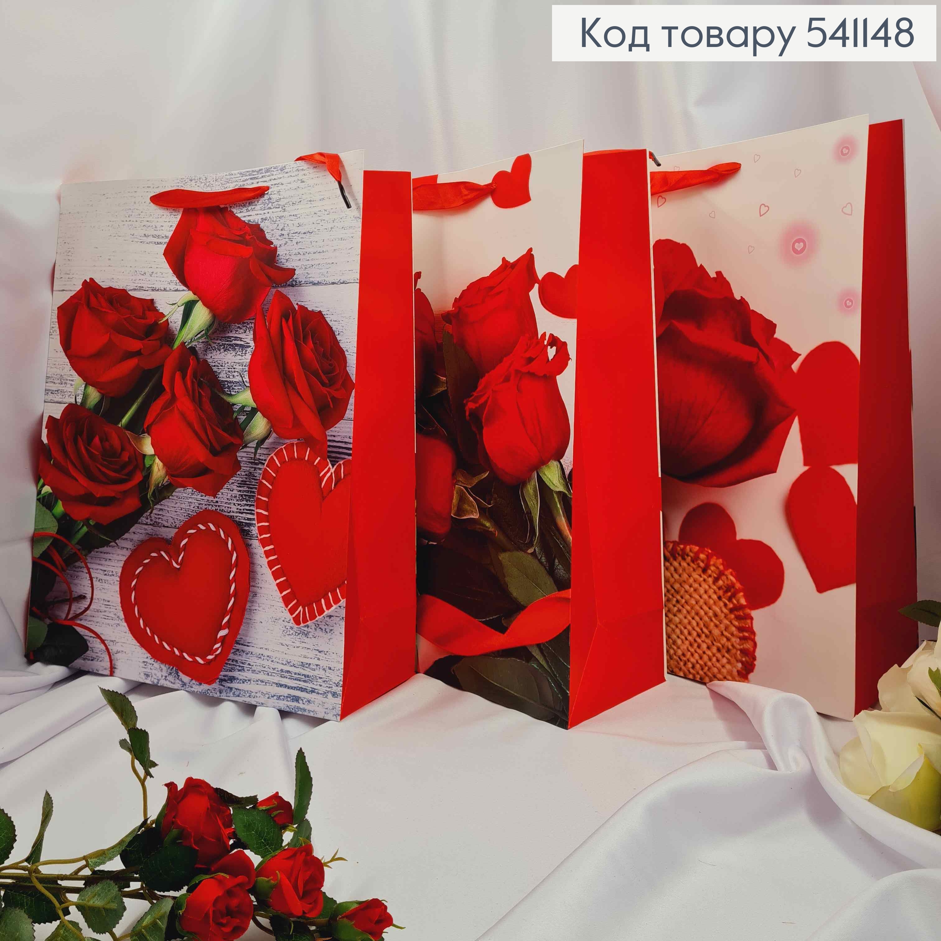 Пакет бумажный, "Красные Розы, в ассорт. 40*31*12см
