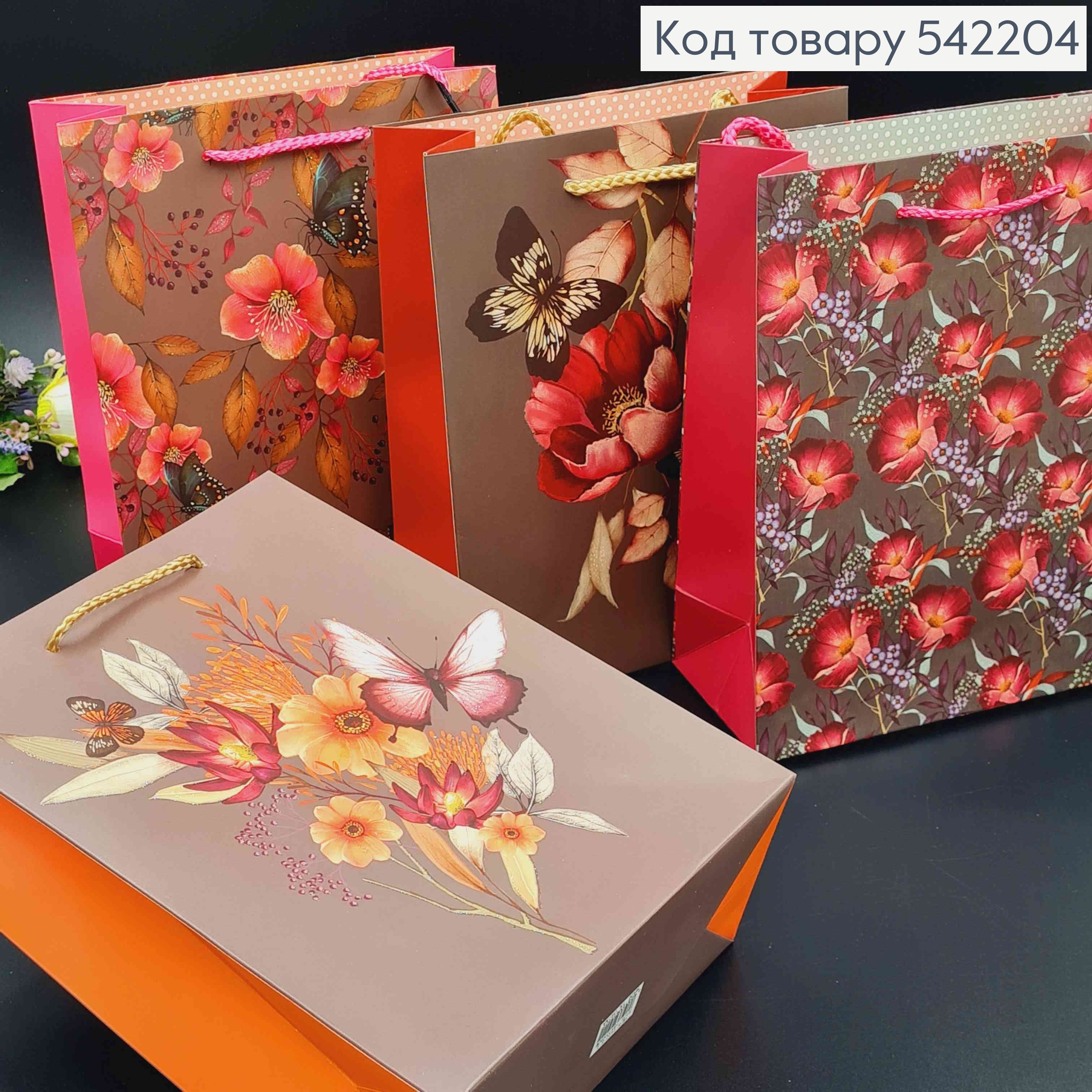Пакет бумажный, "Цветы и бабочки", 18*23*8см в ассорт.