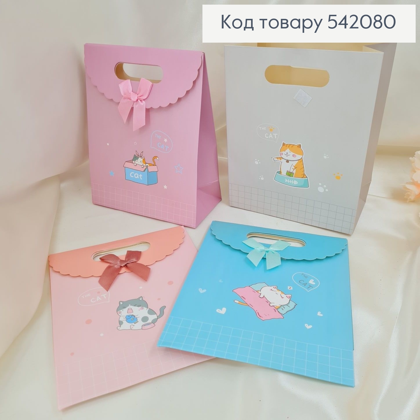 Пакет бумажный маленький на лепучке с бантиком 21х16,5 см в ас.