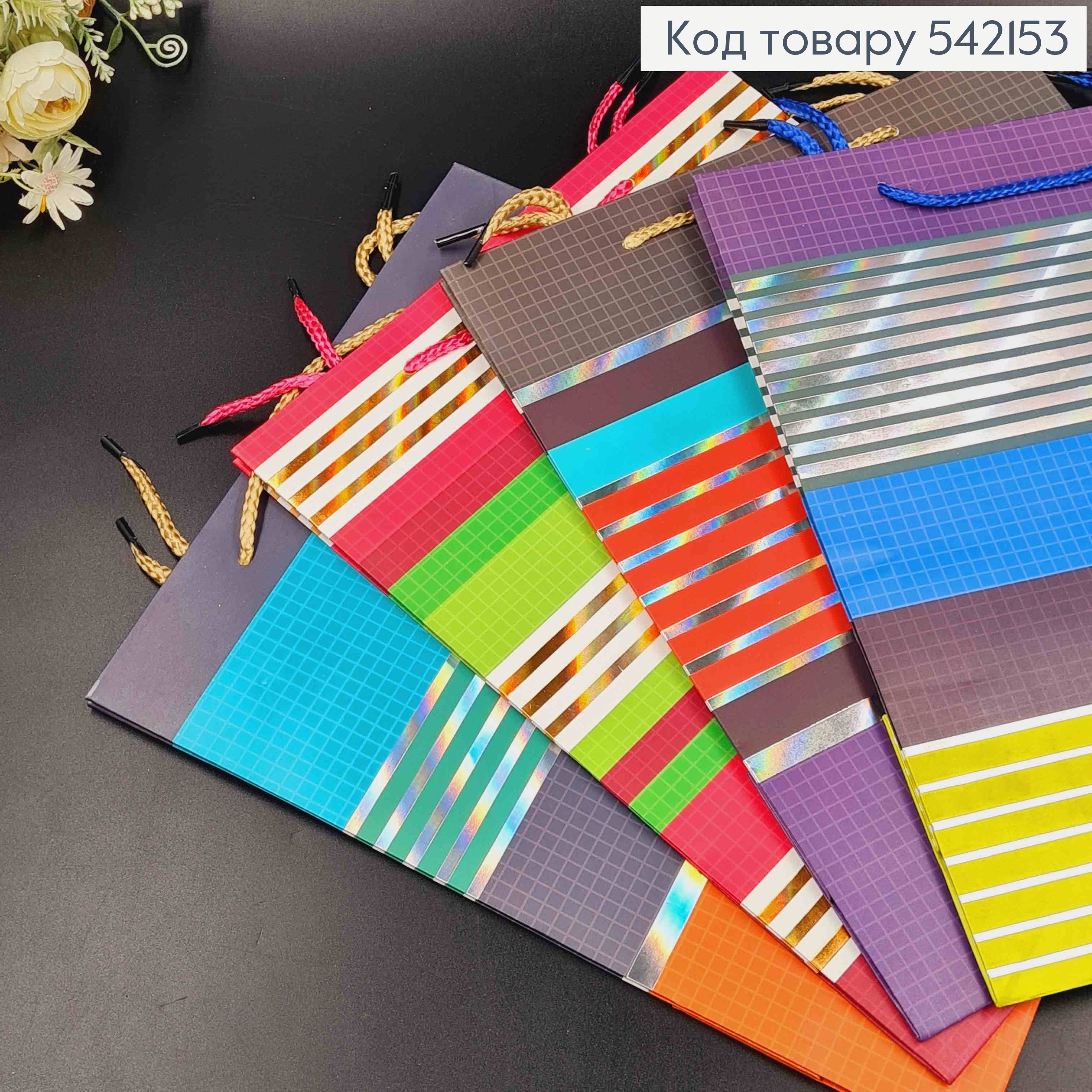 Пакет бумажный "Полосатый с золотыми линиями" 26*32*10см в ассорт.