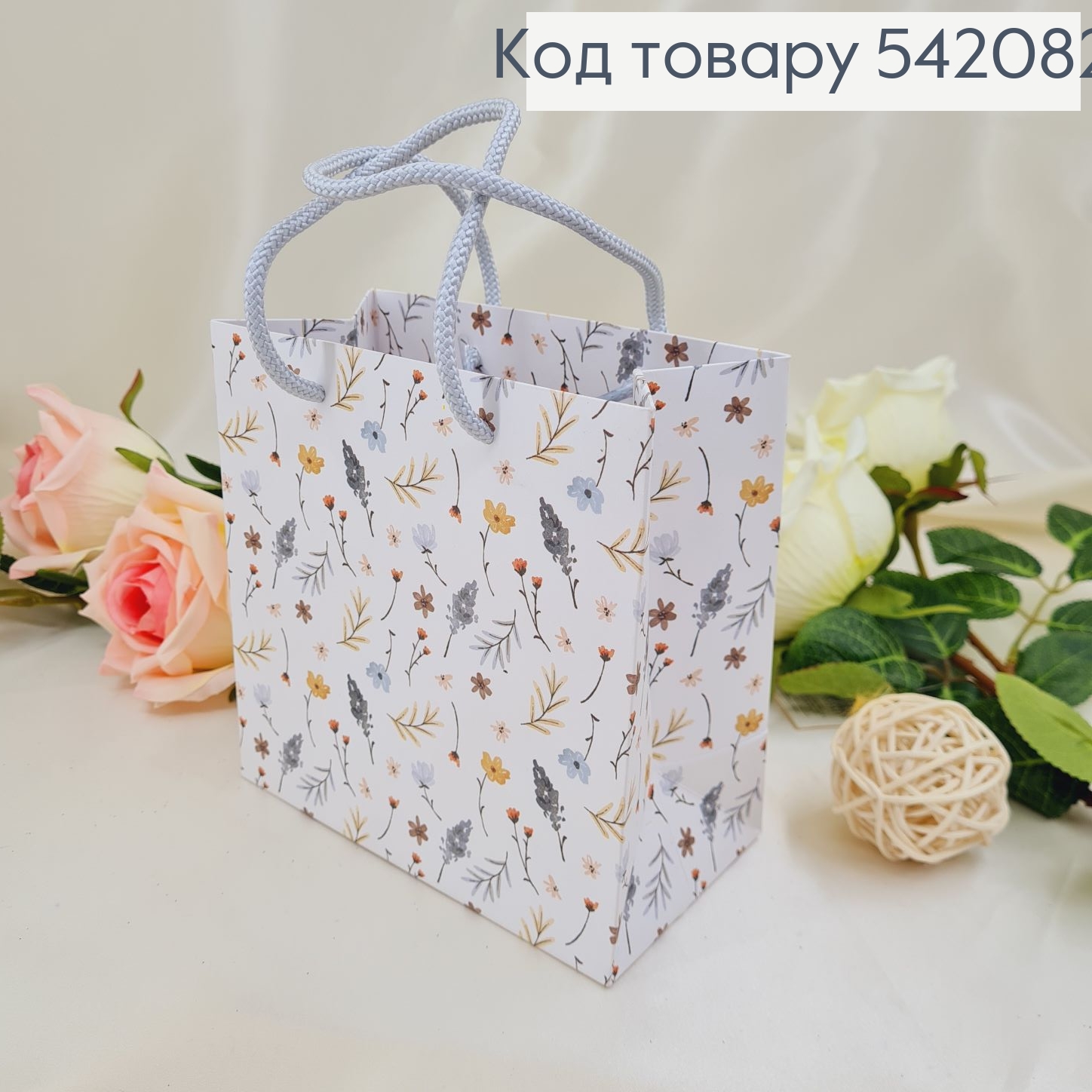 Пакет бумажный средний белый цветы 15х15 см в ас.