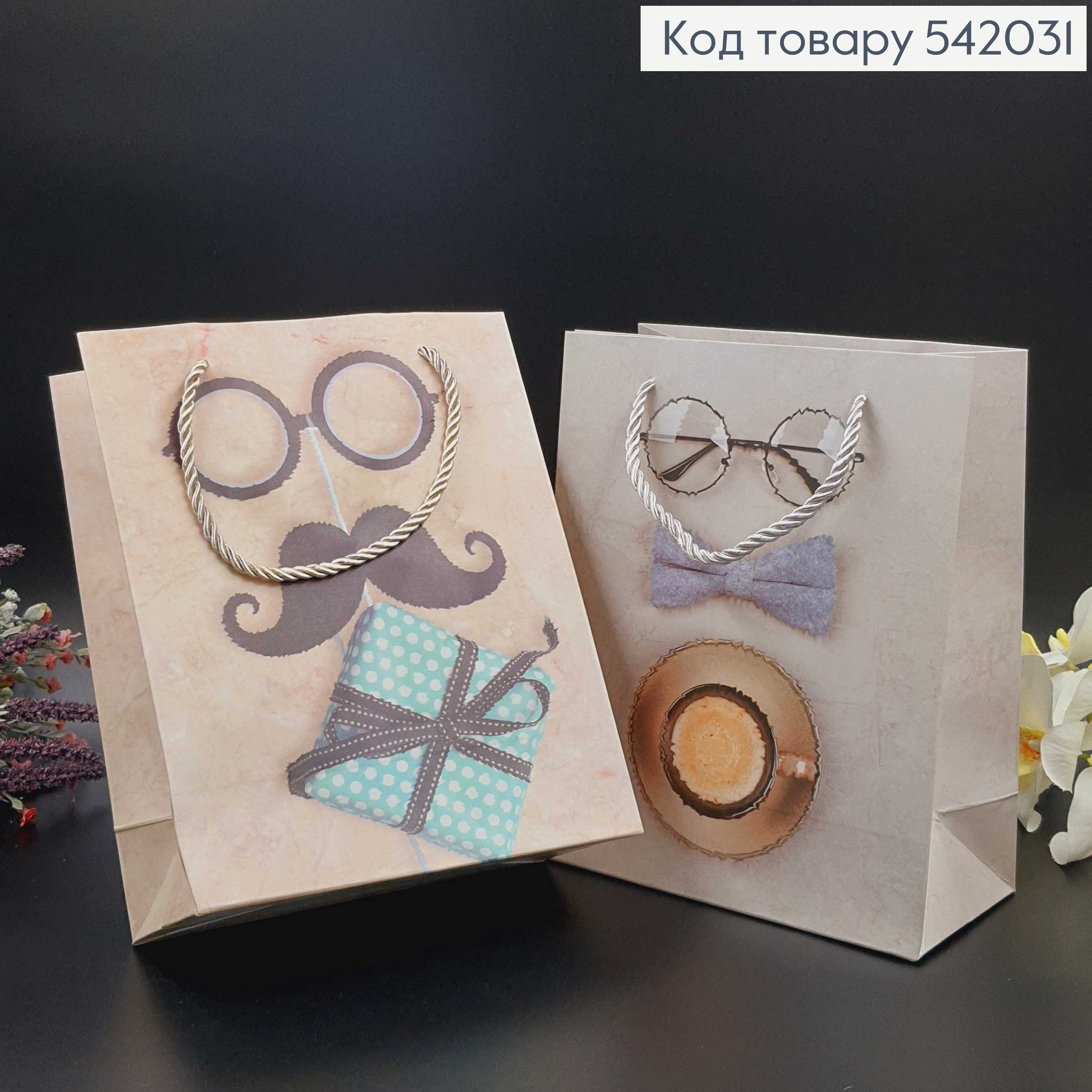 Пакет бумажный средний мужские аксессуары 24х19 см в асс.
