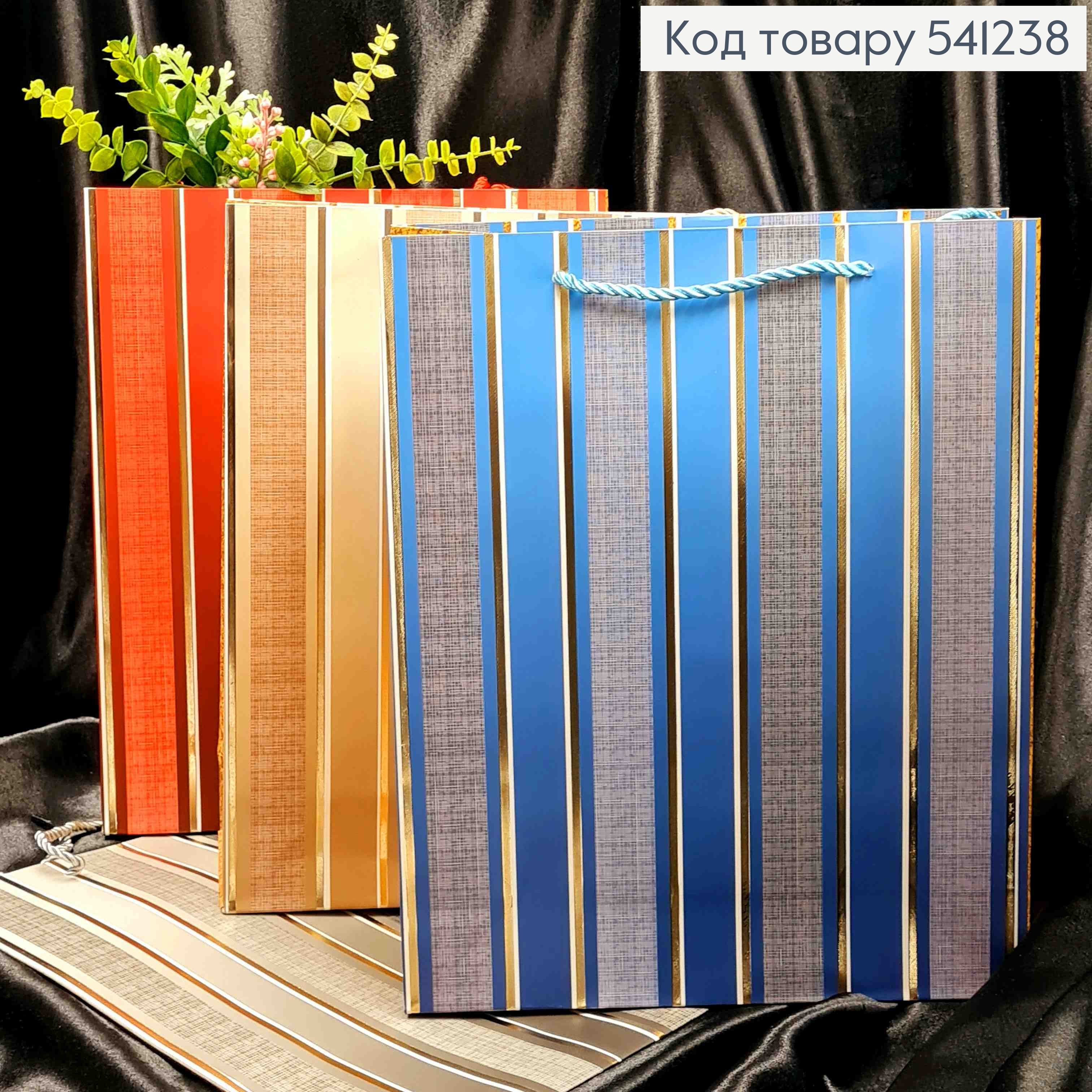 Пакет бумажный в Полосочке с Золотым тиснением, 32*26*10см, в ассортименте