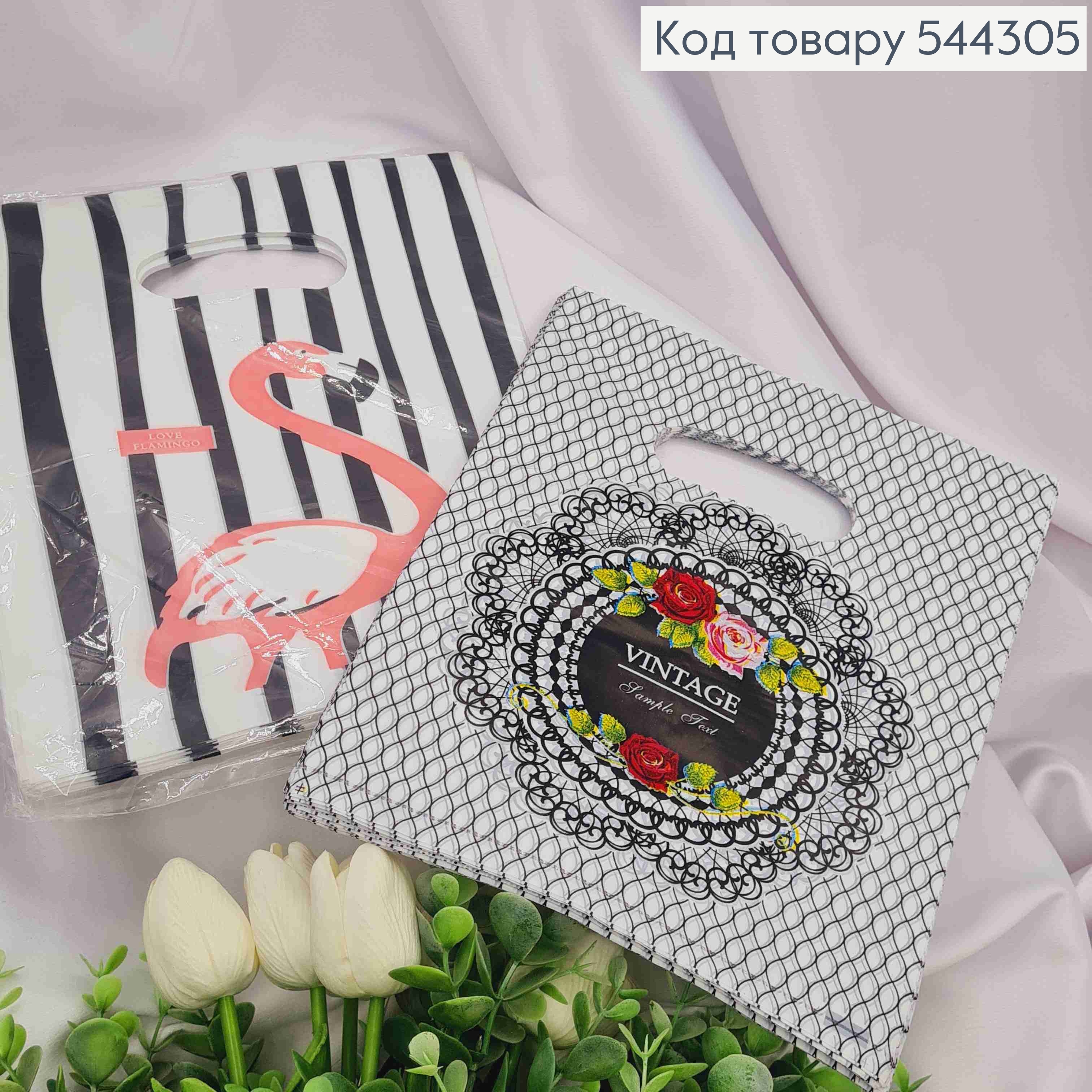 Пакет полиэтиленовый, "VINTAGE" и "LOVE FLAMINGO" Черно-белые в ассортименте, 100шт/уп, 25*20см