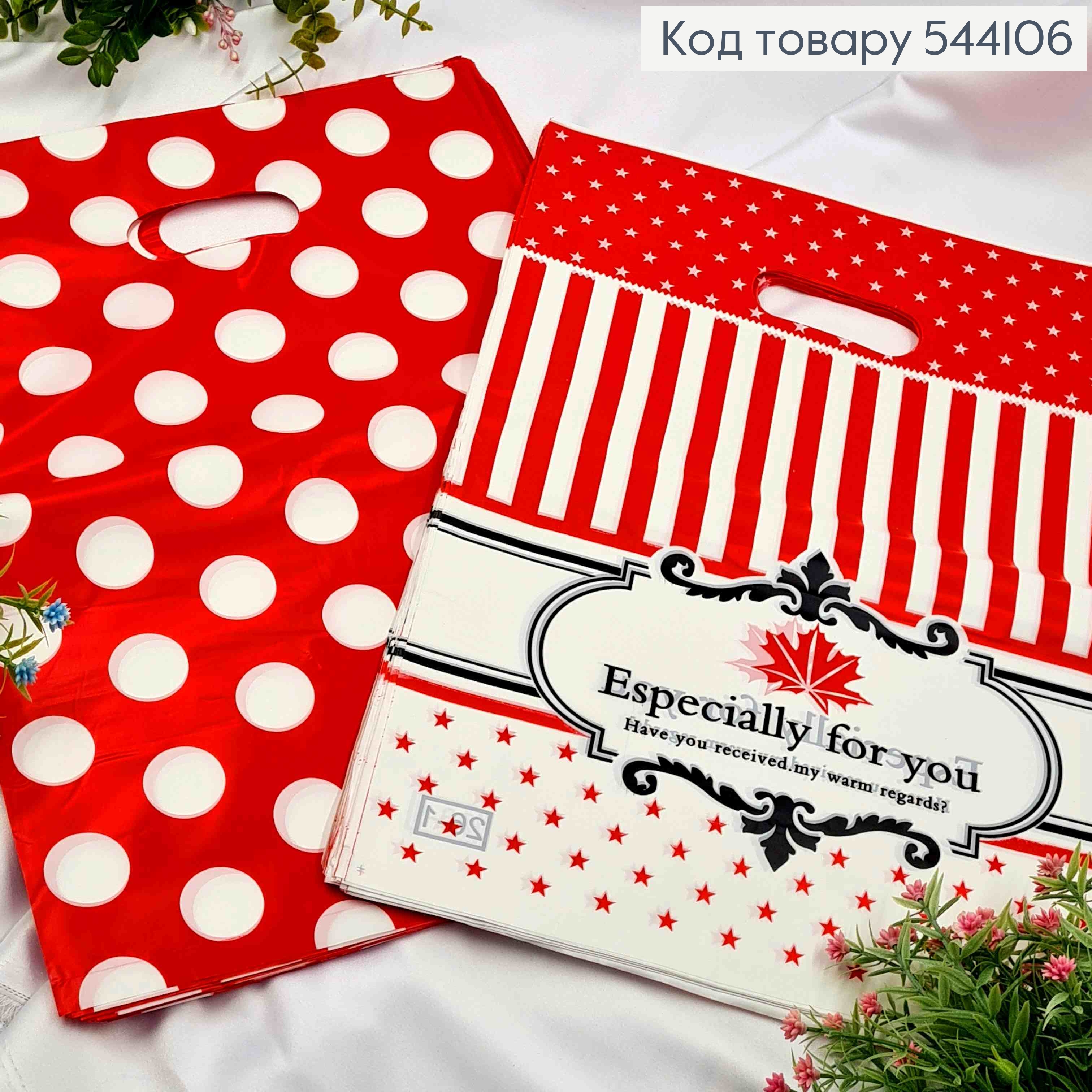Пакет полиэтиленовый "в Горошек" и "Especsal for you" красного цвета в ассорти, 100шт/уп, 39*30см.