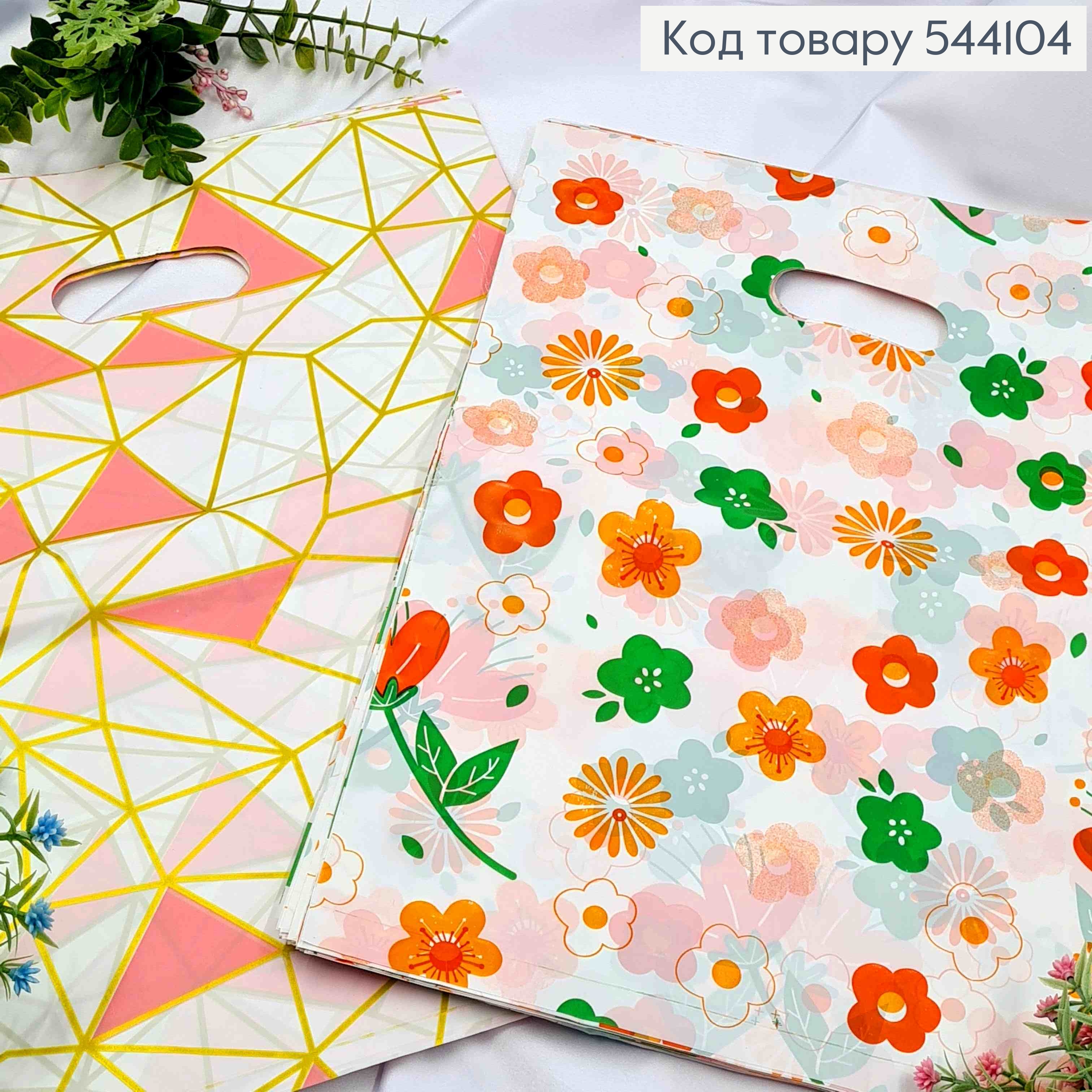 Пакет полиэтиленовый с принтом "Геометрия" и "Цветы" в ассортименте, 100шт/уп, 39*30см
