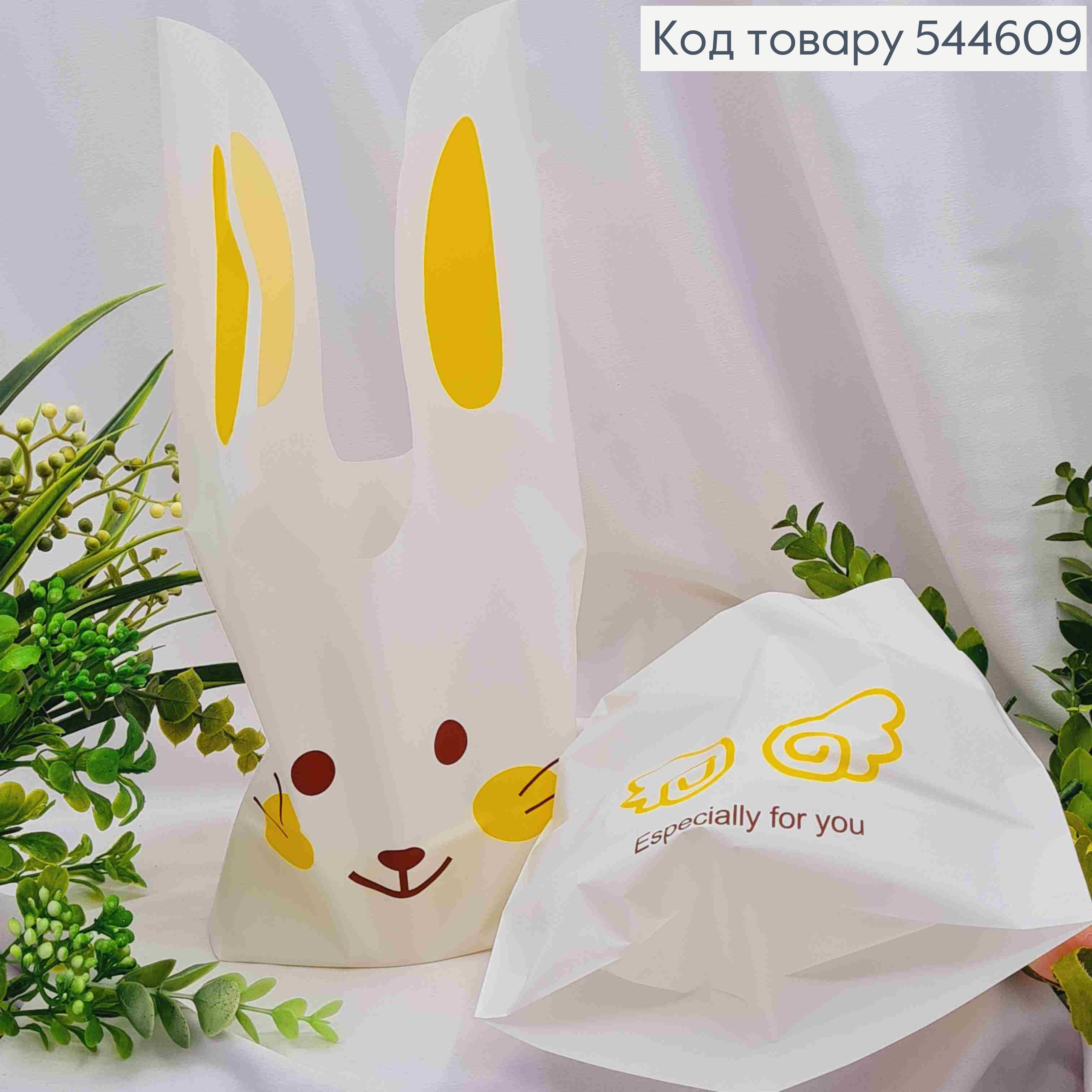 Пакет полиэтиленовый, "Зайчик" желтые щечки, уши-завязки, 50шт/уп, 32*20см