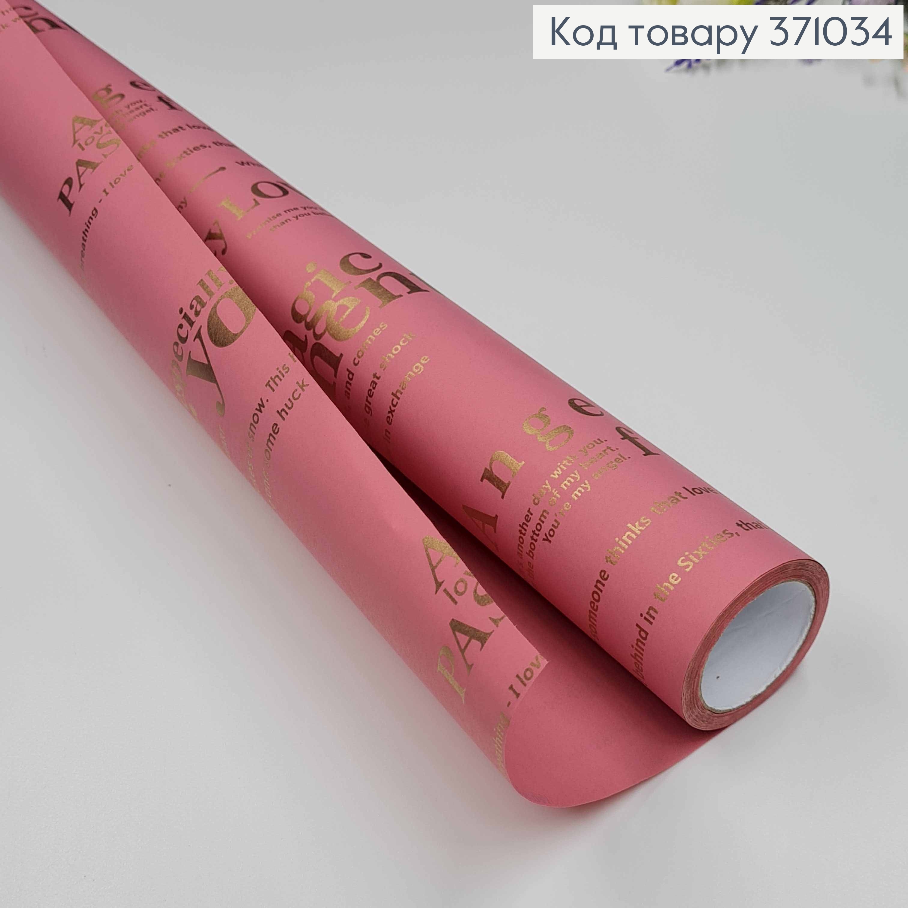 Бумага крафт "Magic Moment" рулон 70см*8м, ТЕМНО-РОЖЕВОГО цвета с золотыми надписями.