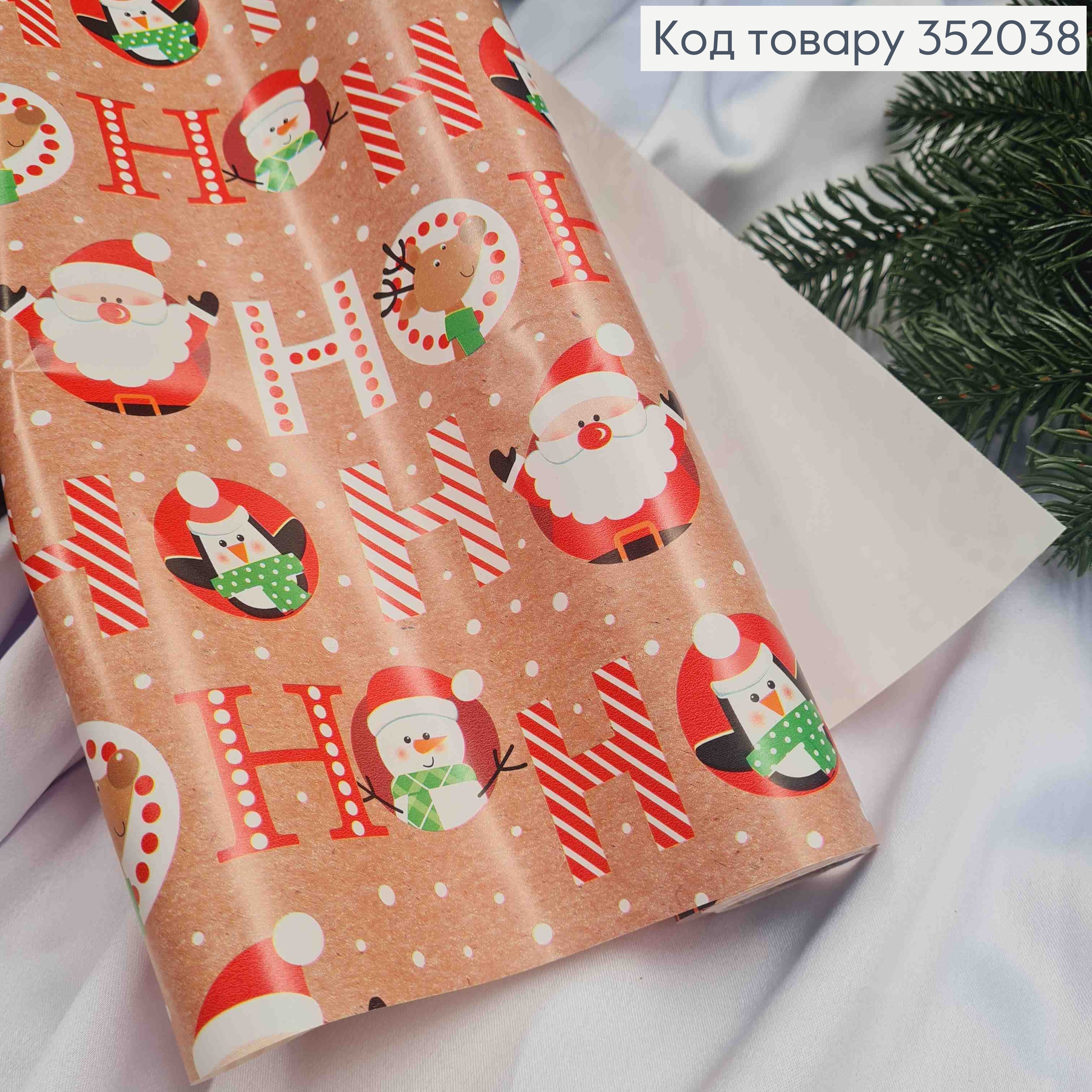 Бумага Крафт новогодняя с "Сантой и Оленем", 70см, длина 7метров