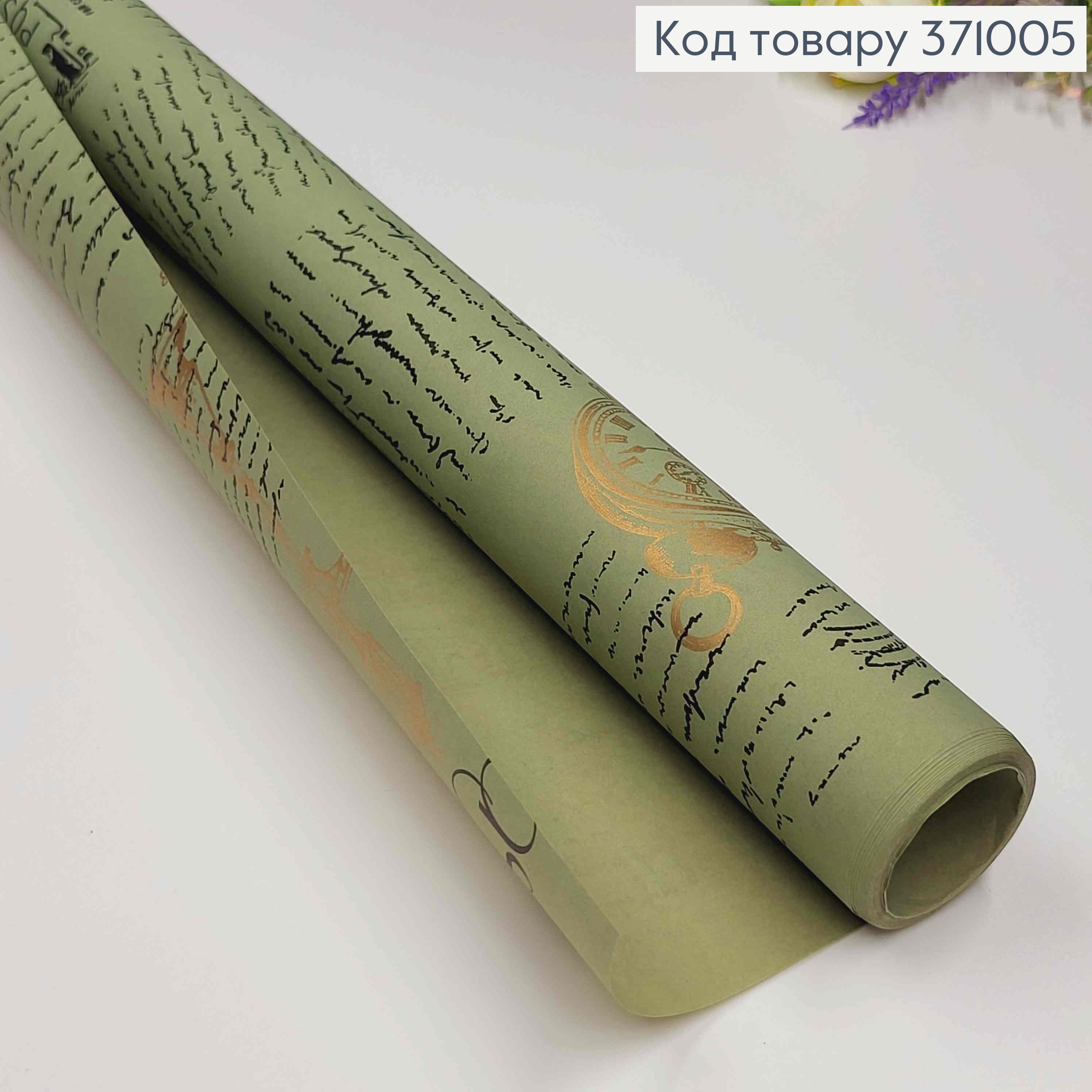 Бумага в рулоне крашеная текстурная "Письмо" с надписями Салатового цвета, 70см* 7метров 371063 фото