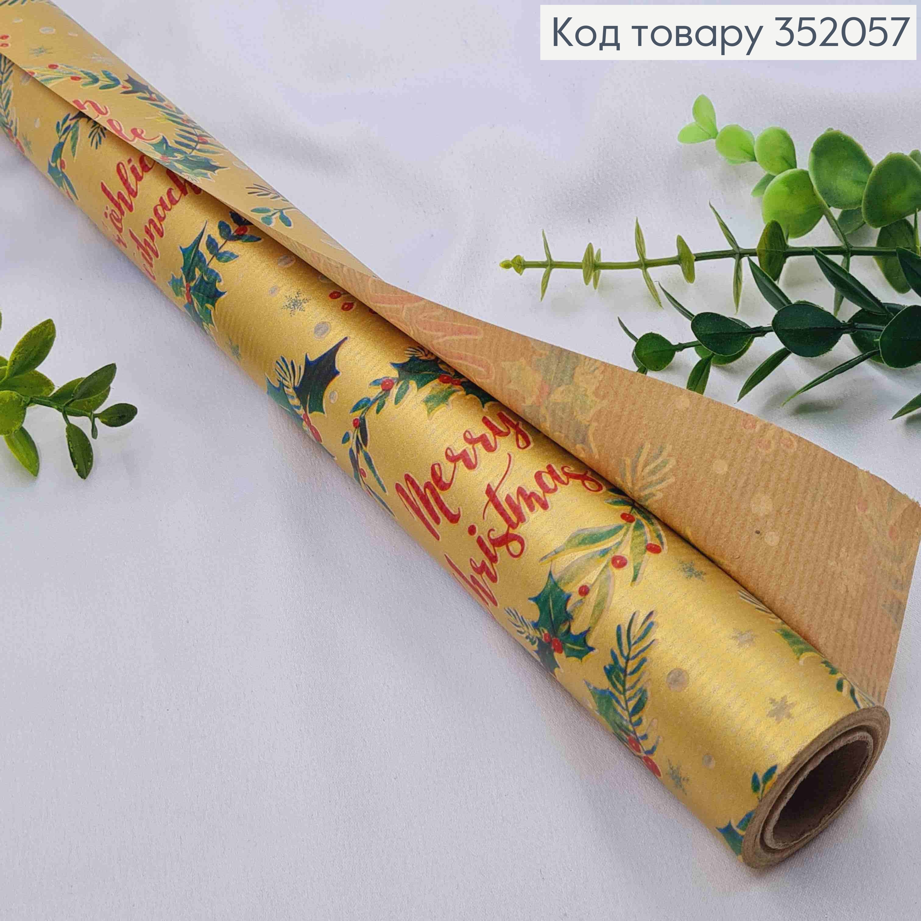 Бумага крафтовая новогодняя "Merry Christmas на Золотом", рулон 70см, Длина 7метров, №2689