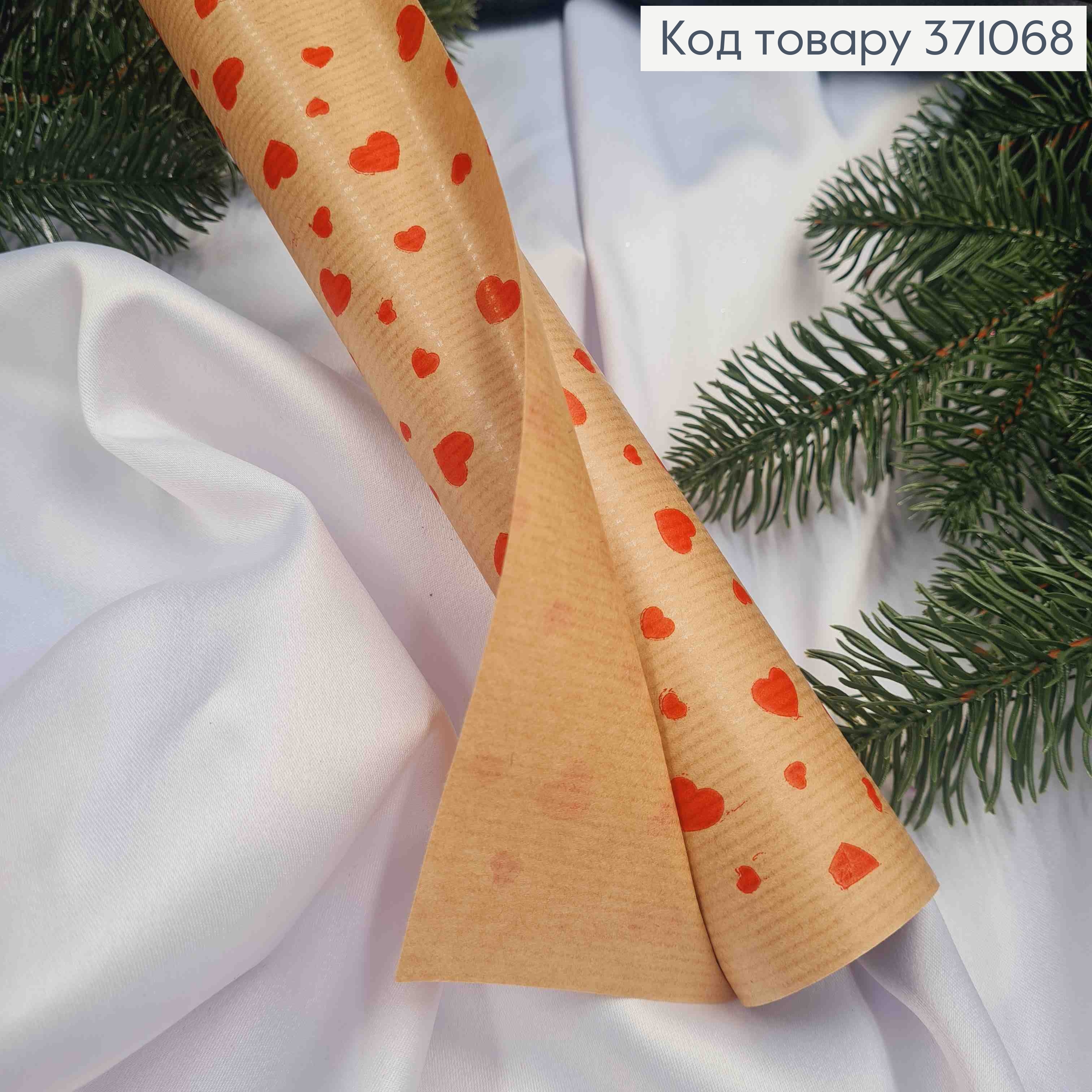 Бумага в рулоне Крафт текстурная с Мелкими Красными Сердечками, 70см*7метров