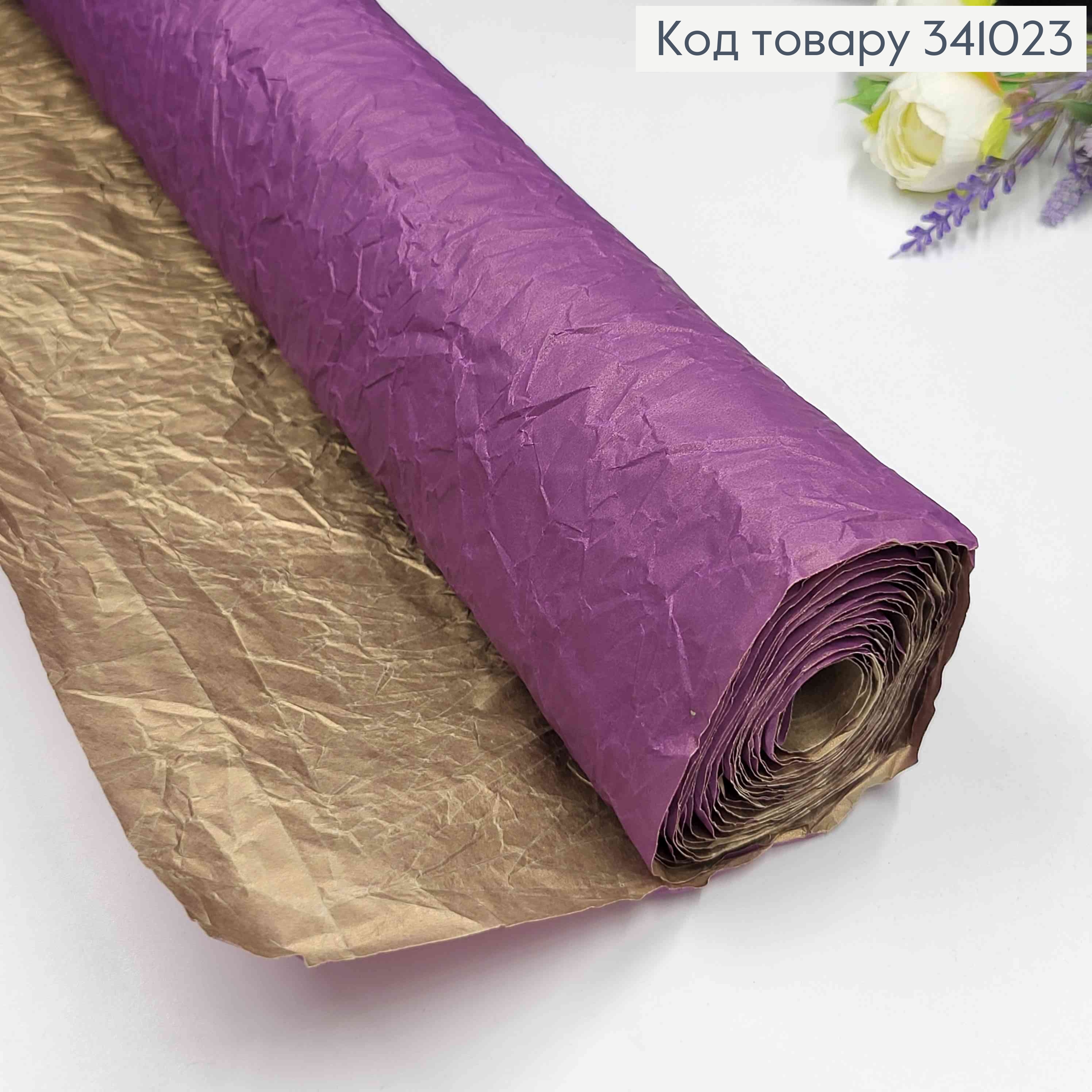 Бумага ЖАТКА, двусторонняя, цвет ФИОЛЕТОВЫЙ+АИВОРЫ, 65см*5ярда