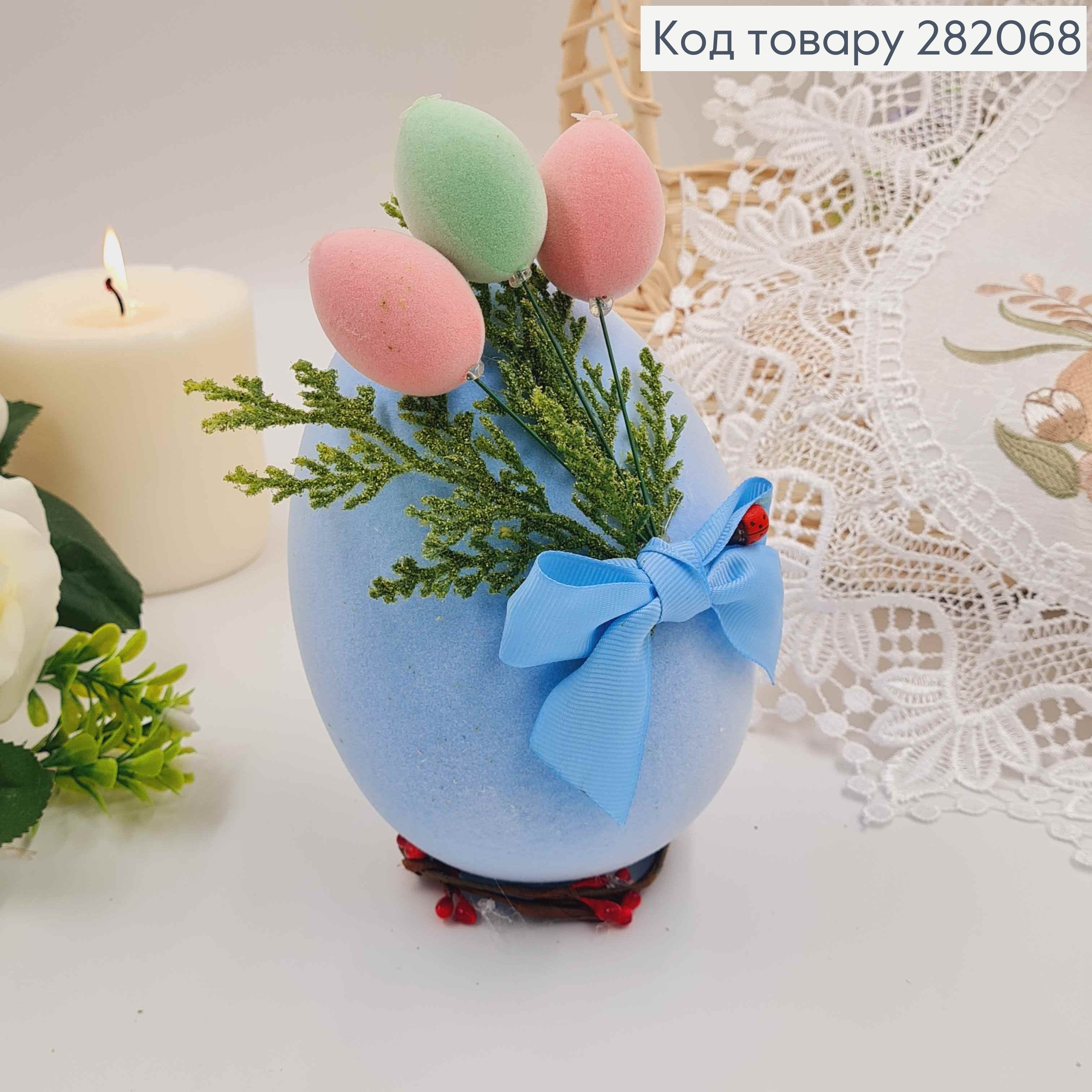 Набор Яиц (6шт/уп), РАЗНОЦВЕТНЫЕ с Пенопластовой крошкой с Бантиком на подвеске, 6*4см 282197 фото