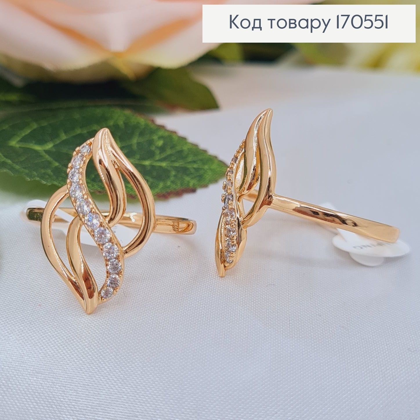 Кольцо "Молния" с Блестящими камнями, Xuping 18К 171259 фото