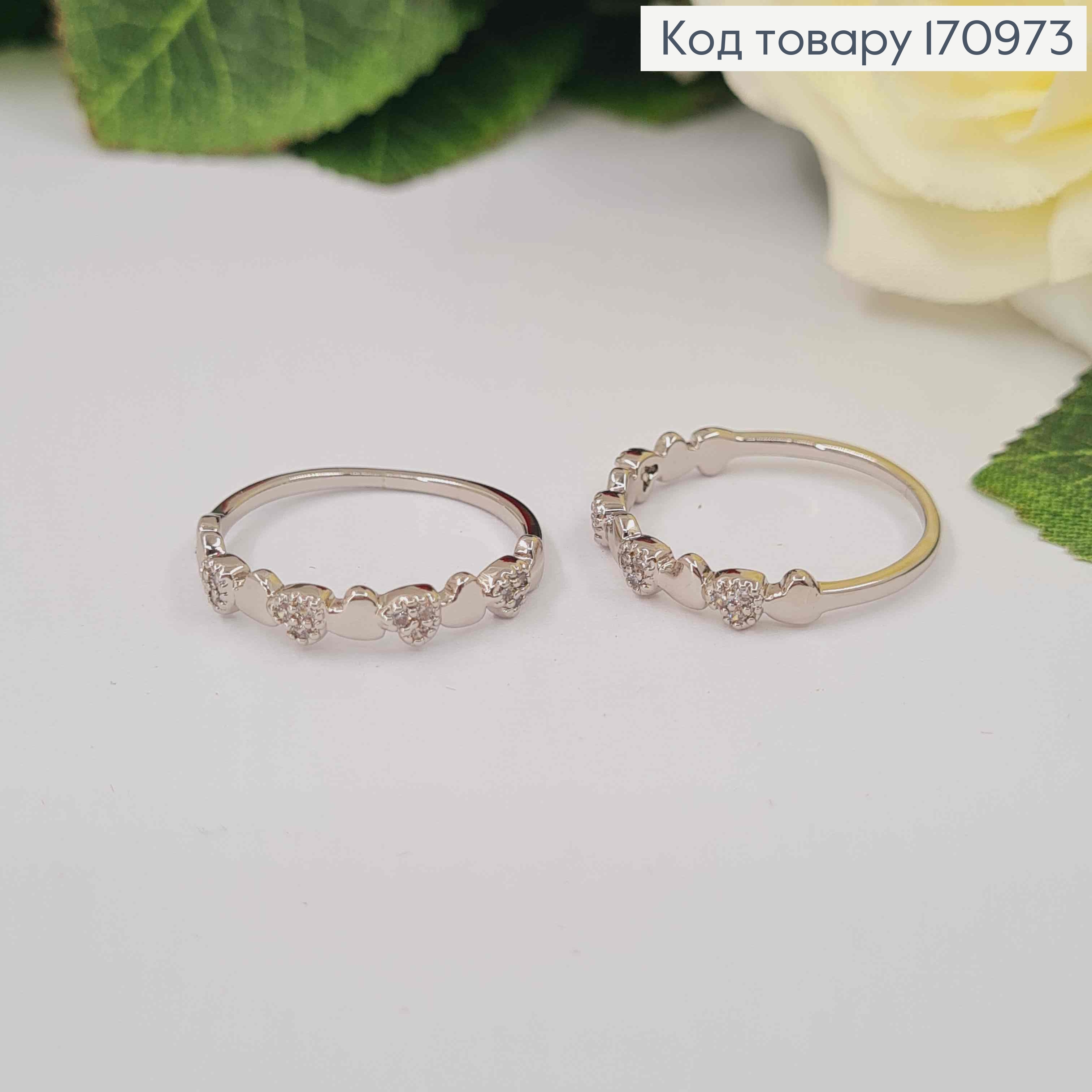 Кольцо родованное, с сердечками и камнями, Xuping 18K