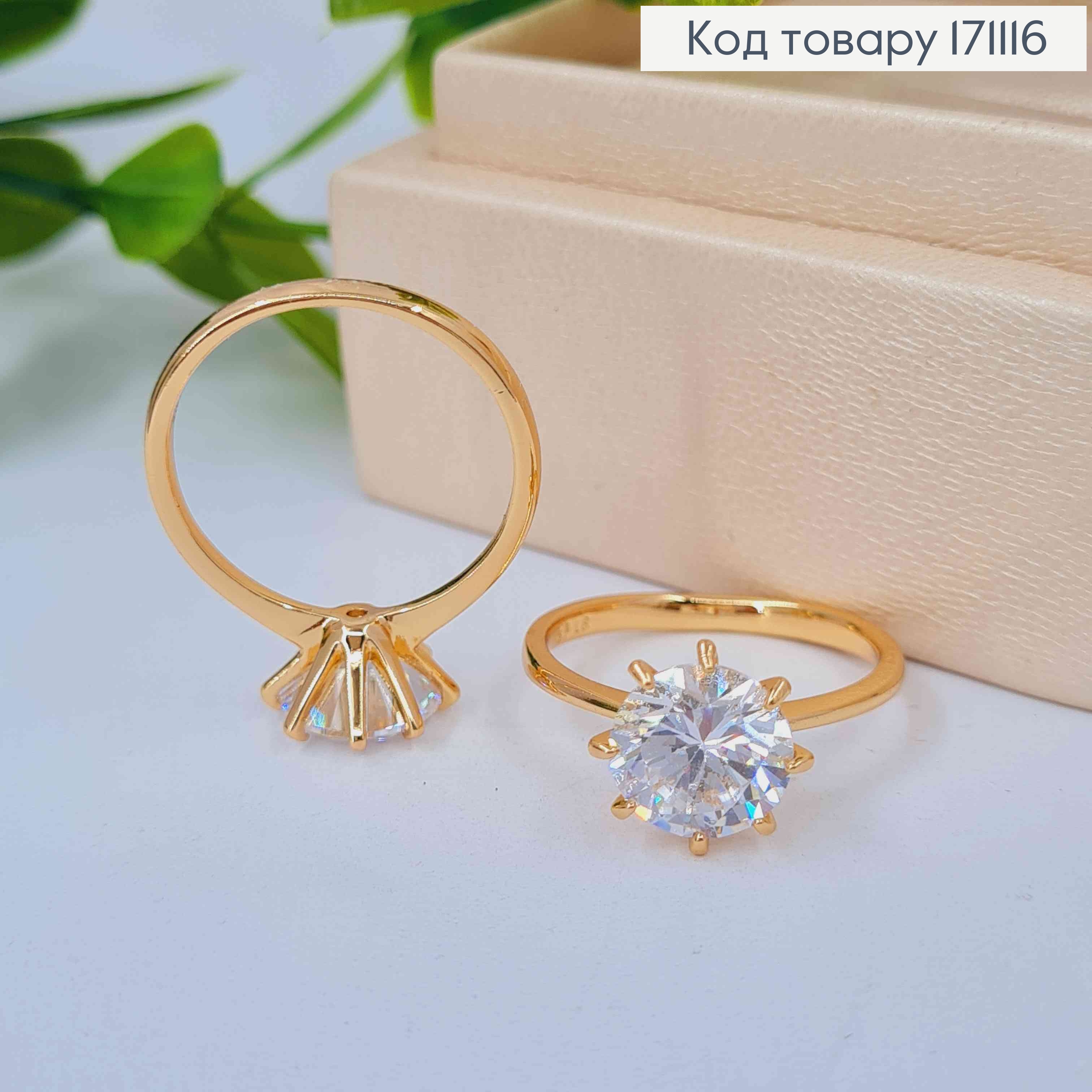 Кольцо с блестящими камнями и тиснением, Xuping 18К. 171262 фото